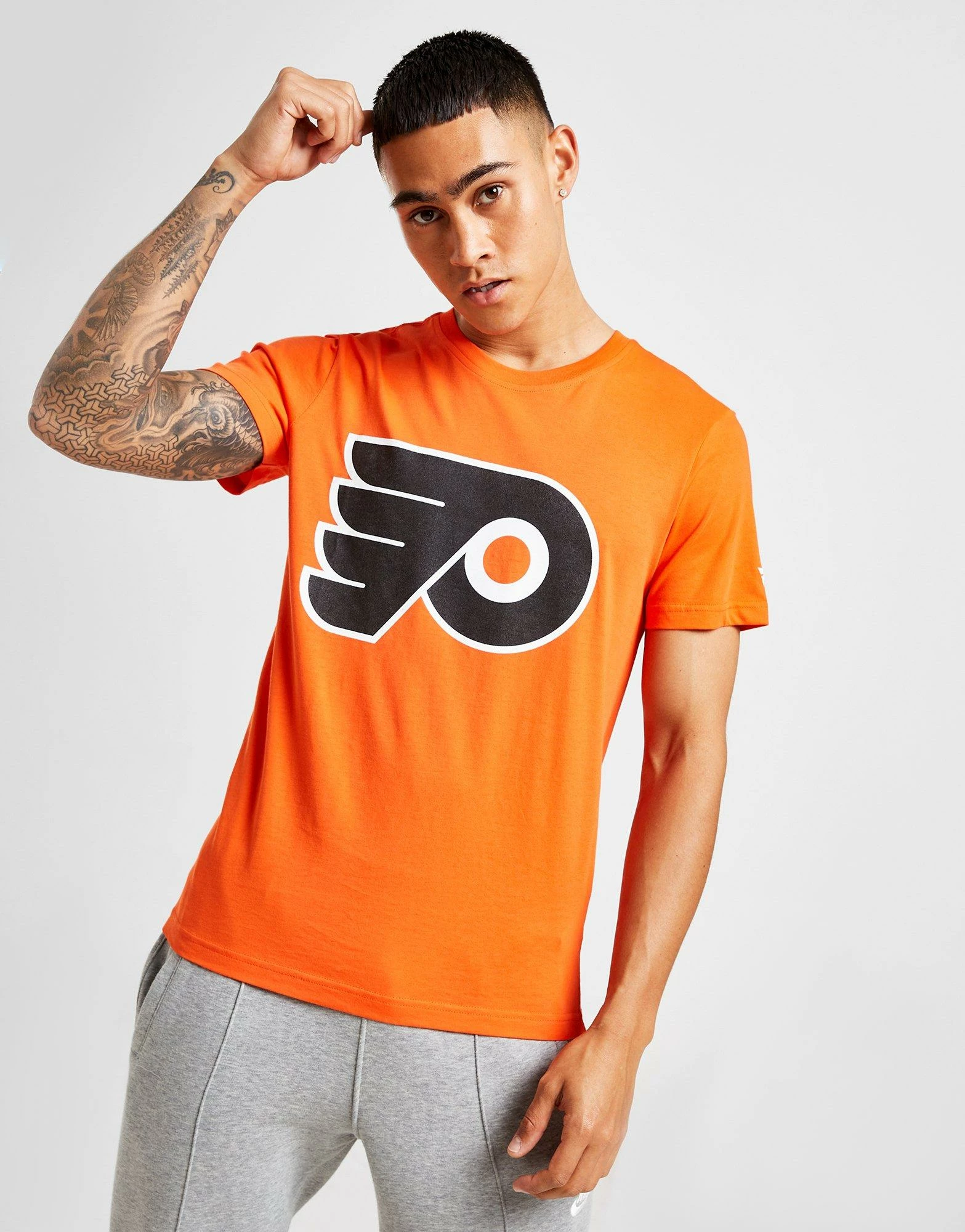 Show you’re a fan with this men’s NHL Philadelphia Flyers Logo T-Shirt from Official Team. In an Orange colourway, this regular-fit tee is made with a super-soft cotton fabric that keeps you feelin’ comfy throughout the day. It features a crew neck with short sleeves for a classic style and is signed off with a Philadelphia Flyers logo to the chest. Machine washable. | Our model is 6’0″ with a 40″ chest and wears a size medium.