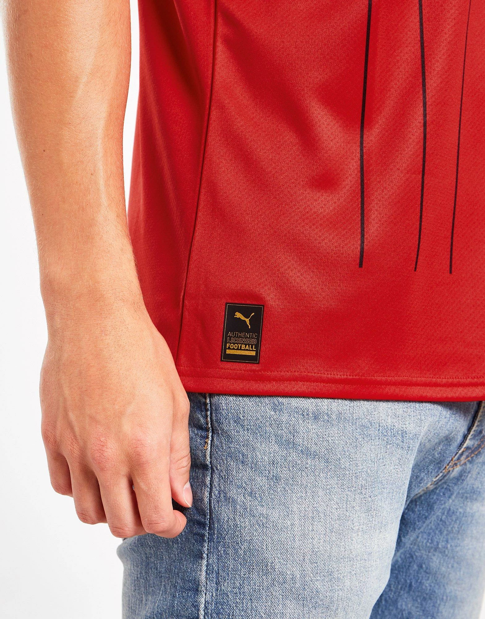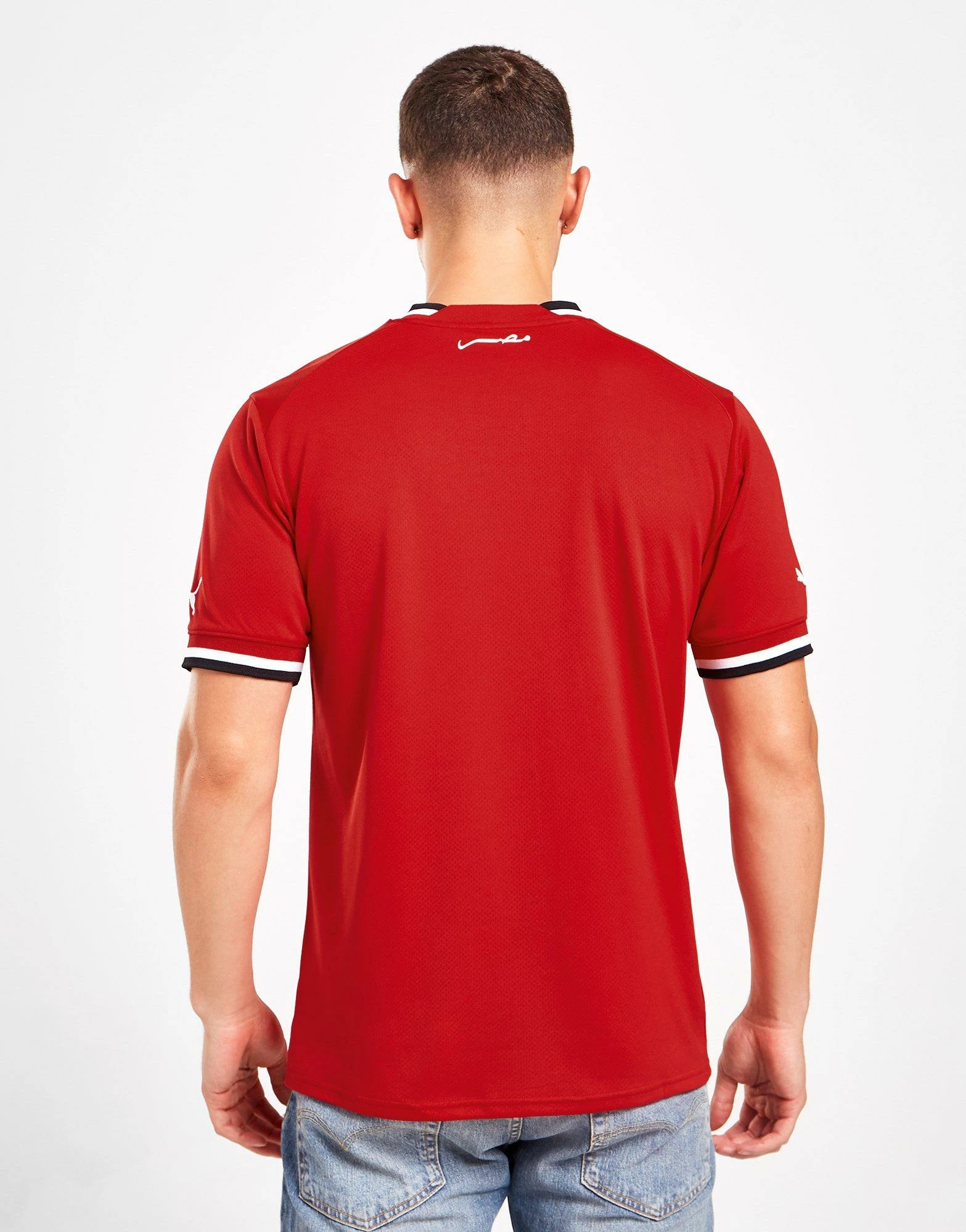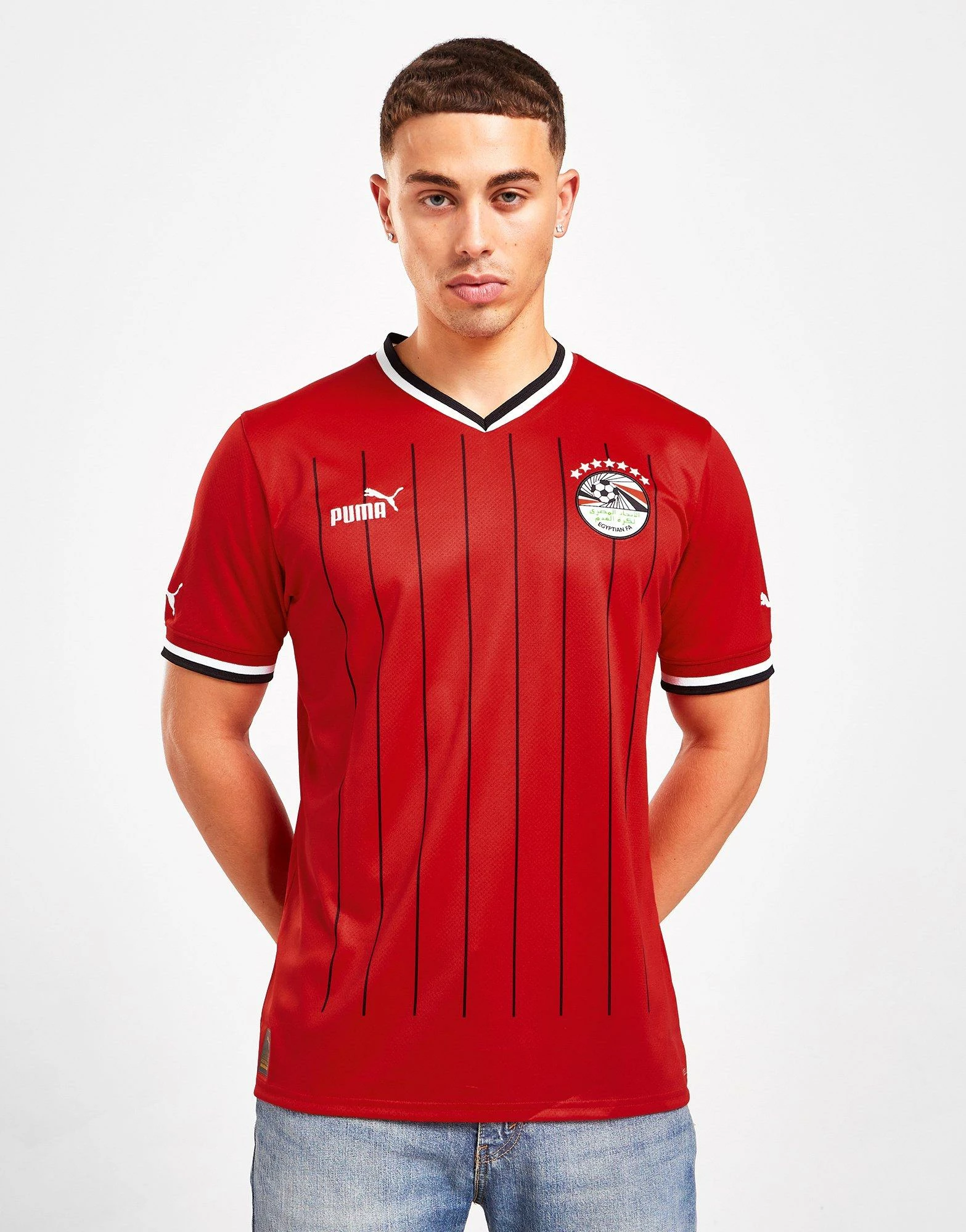 Get behind your team this season with this men’s Eygpt 2022/23 Home Shirt from PUMA. In a Red colourway with Black pinstripes, this shirt is cut from light, breathable polyester fabric for cool comfort on matchday. Modeled off the pro shirt, it features short sleeves with a v-neckline and is equipped with dryCELL sweat-wicking tech to keep you dry and fresh. Finished up with the PUMA logo and Eygpt crest to the chest. Machine washable | Our model is 5’11” with a 38″ chest and wears a size medium.