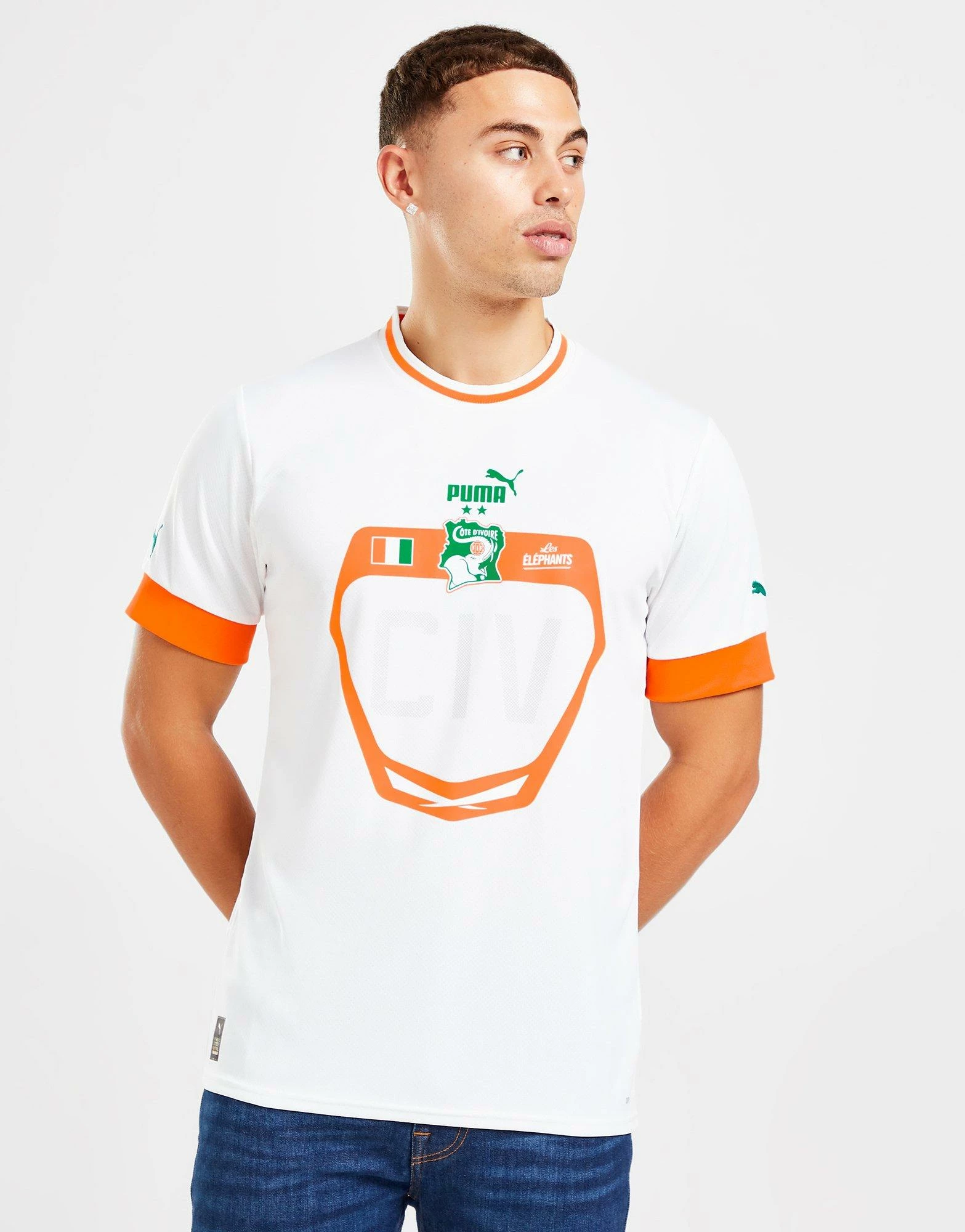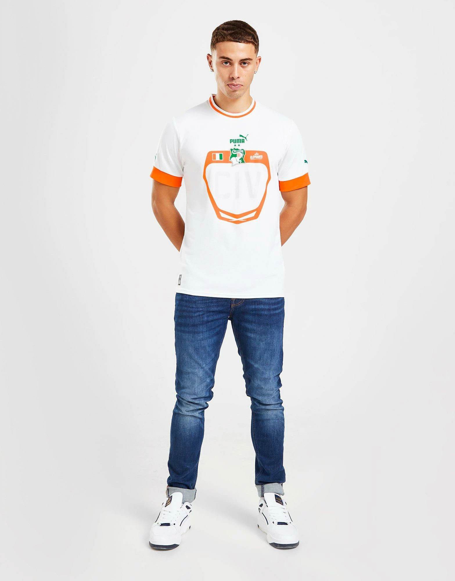 Show your support in this men’s Ivory Coast 2022 Away Shirt from PUMA. Coming in a White colourway, this shirt is made with smooth, lightweight poly fabric for essential comfort. Taking design cues from what the pros wear, it’s built with sweat-wicking dryCELL tech and features a crew neckline and short sleeves. Finished up with PUMA branding and the Ivory Coast crest to sign off. Machine washable.