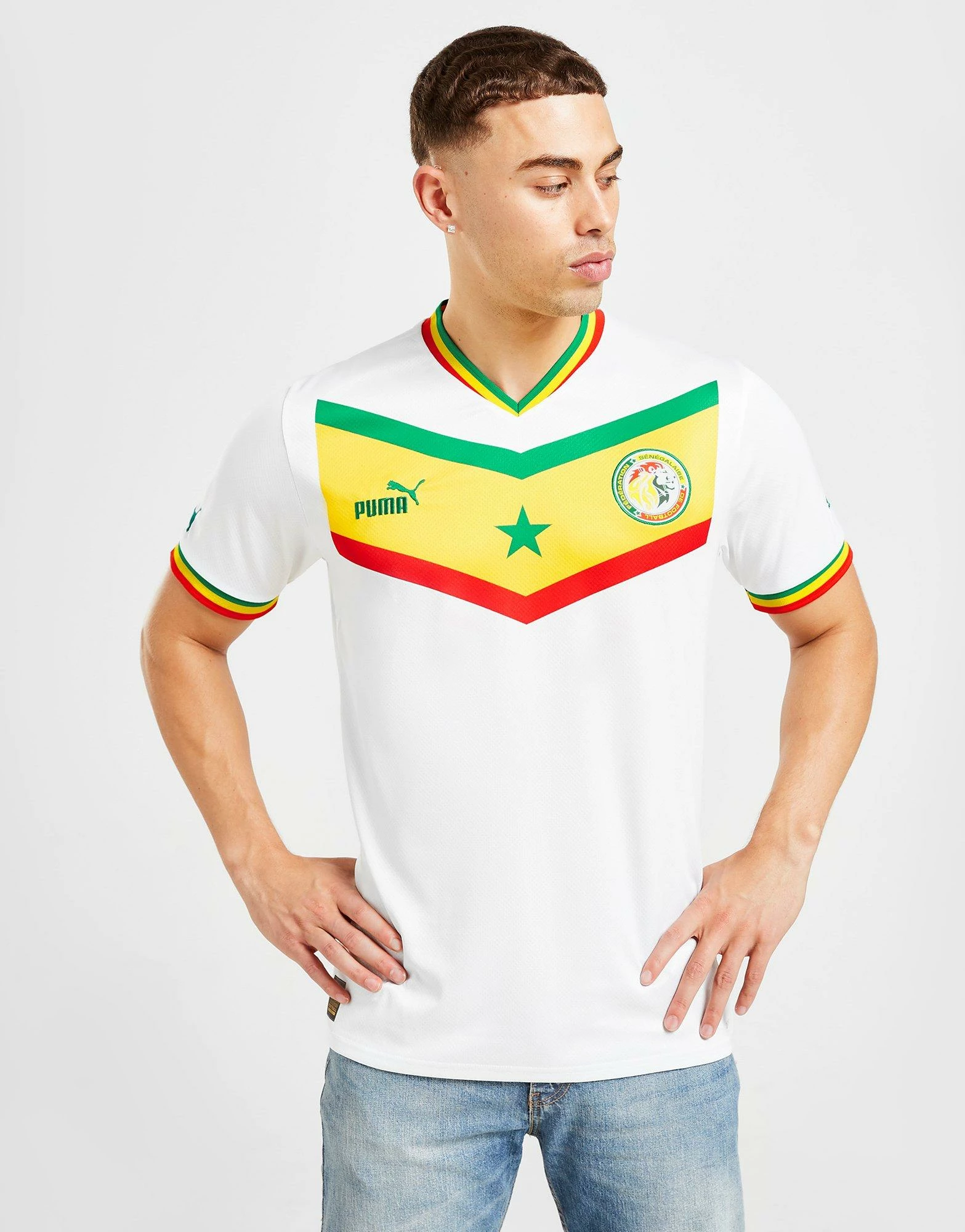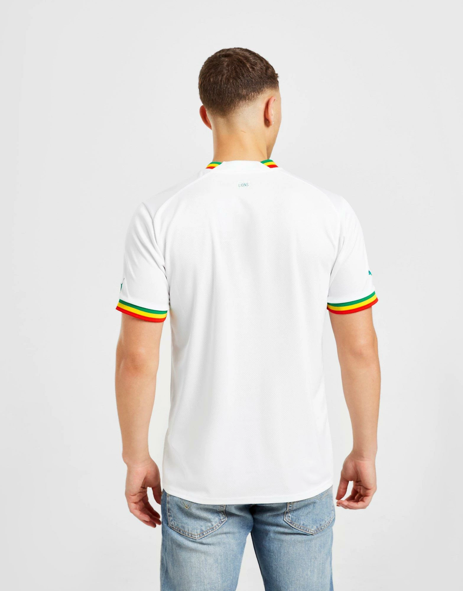 Show your support with this men’s Senegal 2022/23 Home Shirt from PUMA. Coming in a White colourway with Senegal’s famous colours across the chest, this shirt is made from a smooth and lightweight poly fabric that uses at least 20% recycled materials. It features sweat-wicking dryCELL tech for cool comfort, a ribbed V-neck and a set-in sleeve with a raglan back seam. Signed off with the Senegalese badge and PUMA branding to the chest. Machine washable. | Our model is 5’7.5″ and wears a size small.