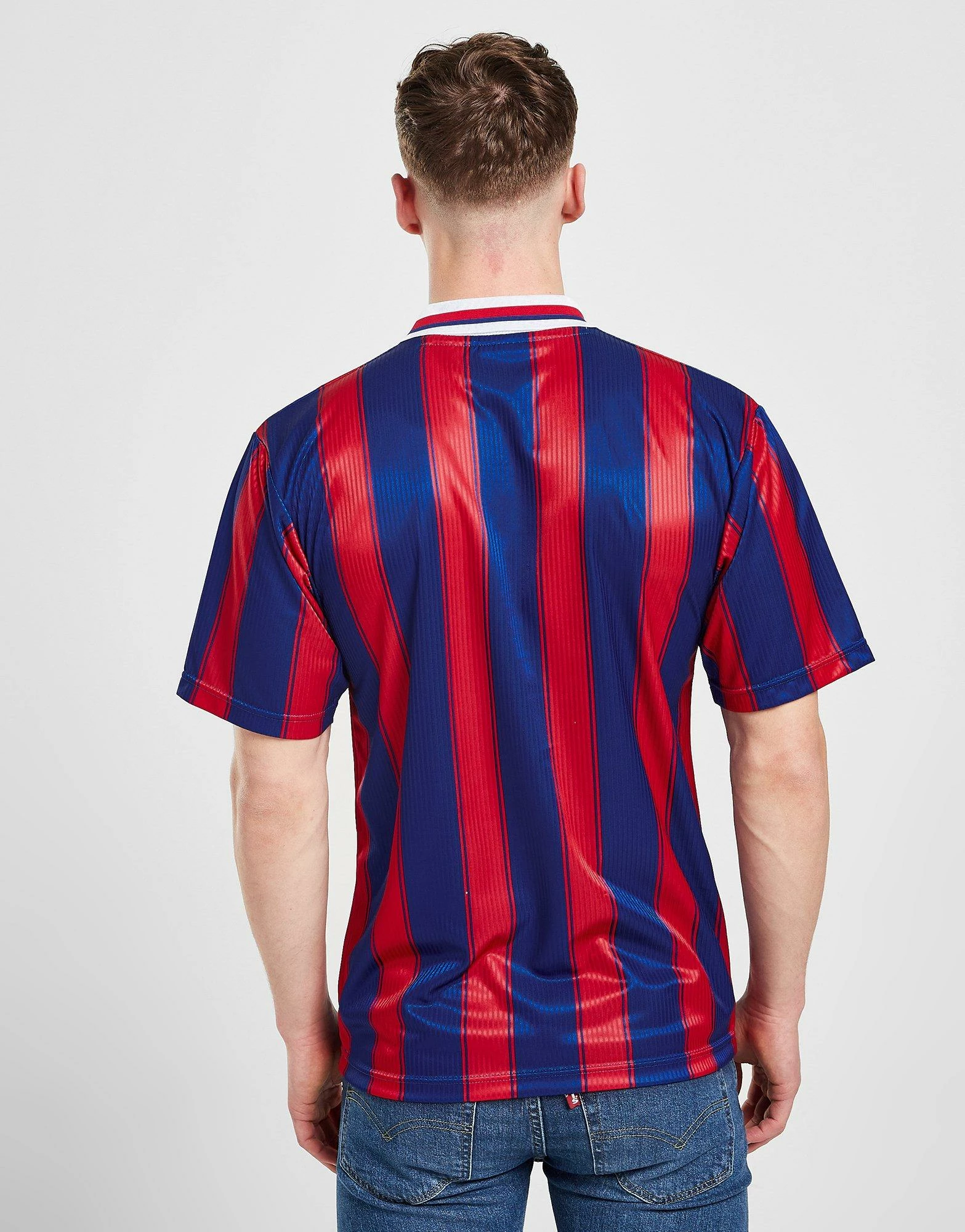 Cop a classic look and show your support for the Eagles with this men’s Crystal Palace FC 1997 Retro Home Shirt. In the iconic Red and Blue home colourway, this standard fit shirt is made from light, durable polyester fabric for a relaxed feel. Modelled after the original, it features a spread collar with short sleeves in a classic look and is finished up with club sponsors and the iconic Palace badge to the chest. Machine washable | Our model is 6’2″ with a 39″ chest and wears a size medium.