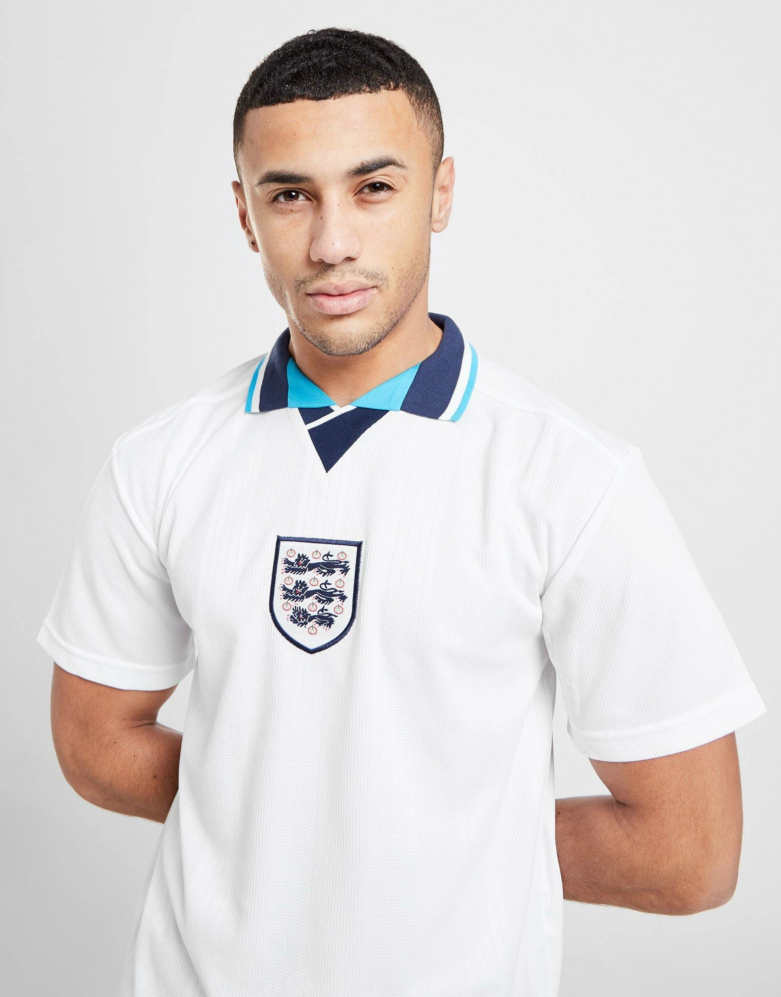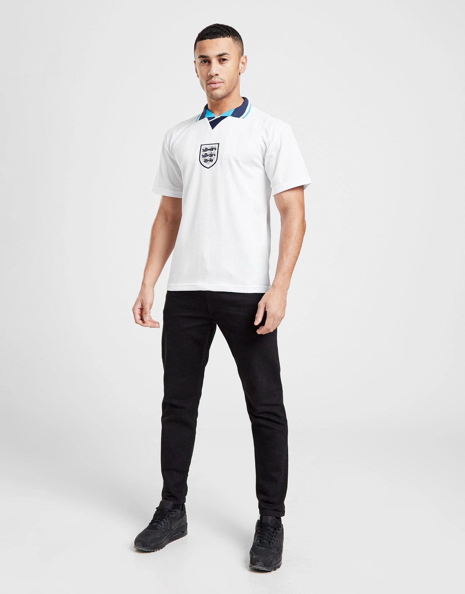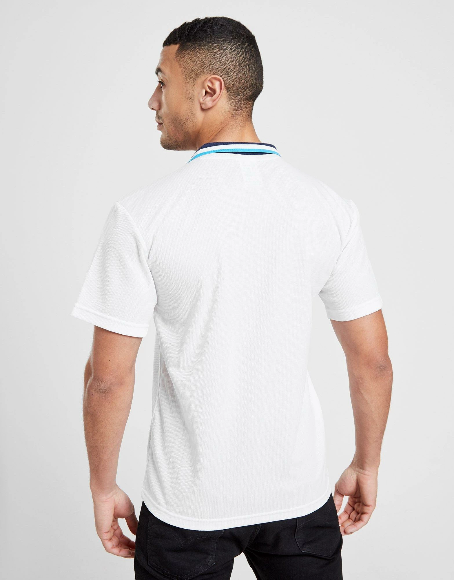Tag den tilbage til de glade 90’ere med denne England 96′ European Championship Retrotrøje fra Score Draw i hvid farvenuaunce. Trøjen er i normal pasform og produceret i åndbart polyester. Den har en bred krave i navyblå farvenuaunce og korte ærmer. Rundes af med Englands logo på brystet. Tåler maskinvask. Vores model er 188 med bryststørrelse 38 og bærer en str. M.