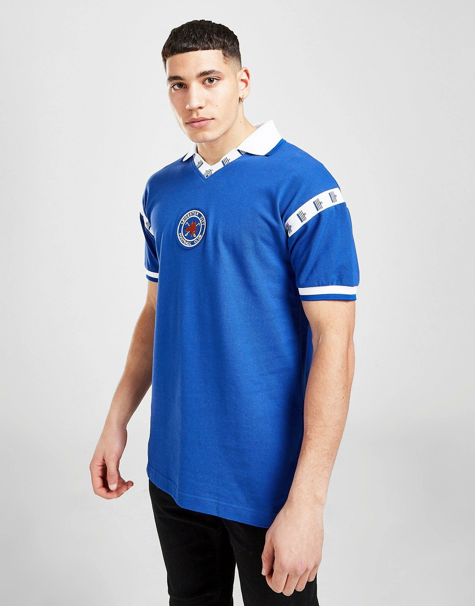 Go old-school when supporting your club with this men’s Leicester City FC ’76 Home Retro Shirt from Score Draw. In a classic blue colourway, this home shirt is made from soft and breathable poly fabric for full matchday comfort. It features short sleeves with ribbed cuffs, and a thick, V-neck spread collar in white for a vintage vibe. With sporty Admiral taping to the shoulders and collar, this jersey is finished up with the icon Foxes badge embroidered to the chest. Machine washable. | Our model is 5’11” with a 38″ chest and wears a size medium.