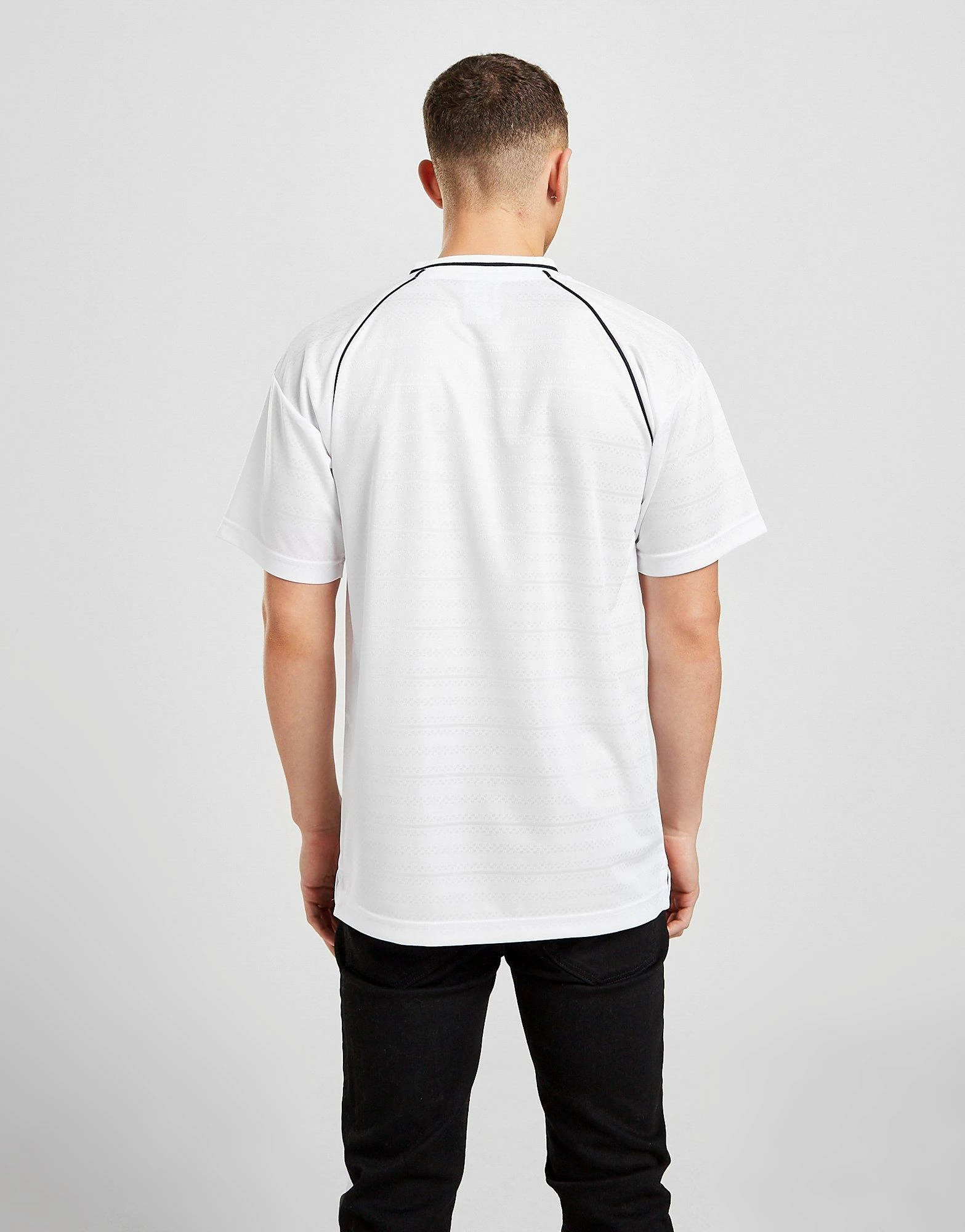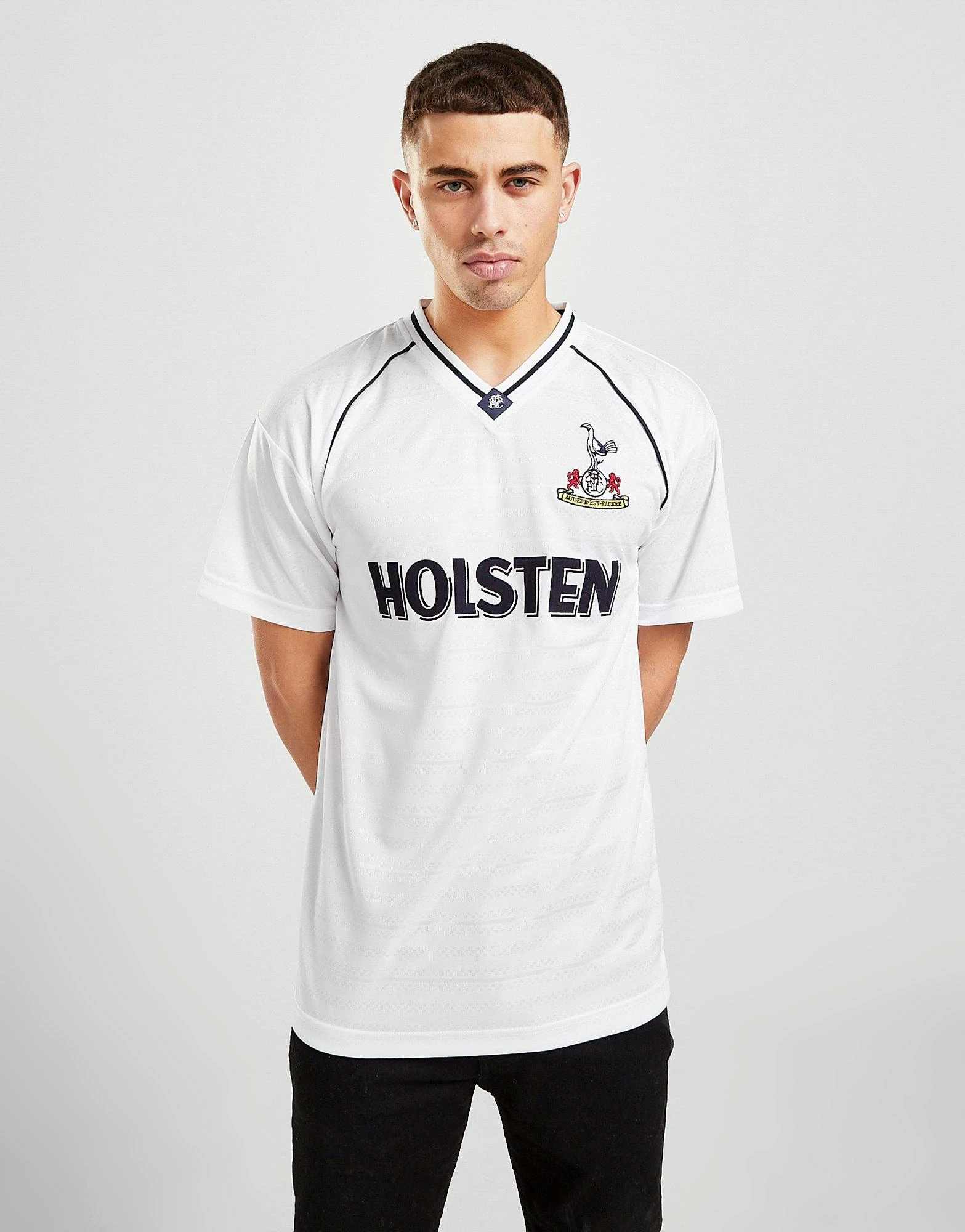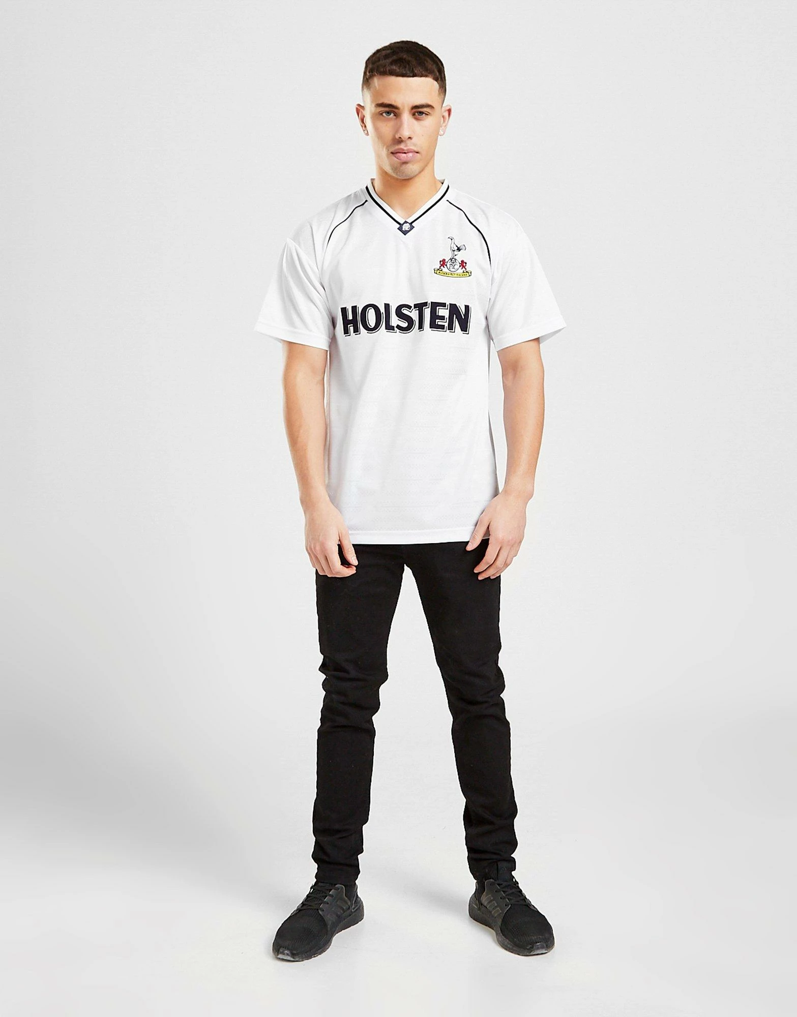 Worn by the pros, this men’s Tottenham Hotspur ’91 Home Shirt from Score Draw has been brought back from the archives. In a fresh white colourway, this retro shirt is crafted from lightweight fabric for comfy wear. It has short sleeves and a V-neckline. Finished with the iconic Spurs badge embroidered to the chest. Machine washable. | Our model is 5’11” with a 38″ chest and wears a size medium._