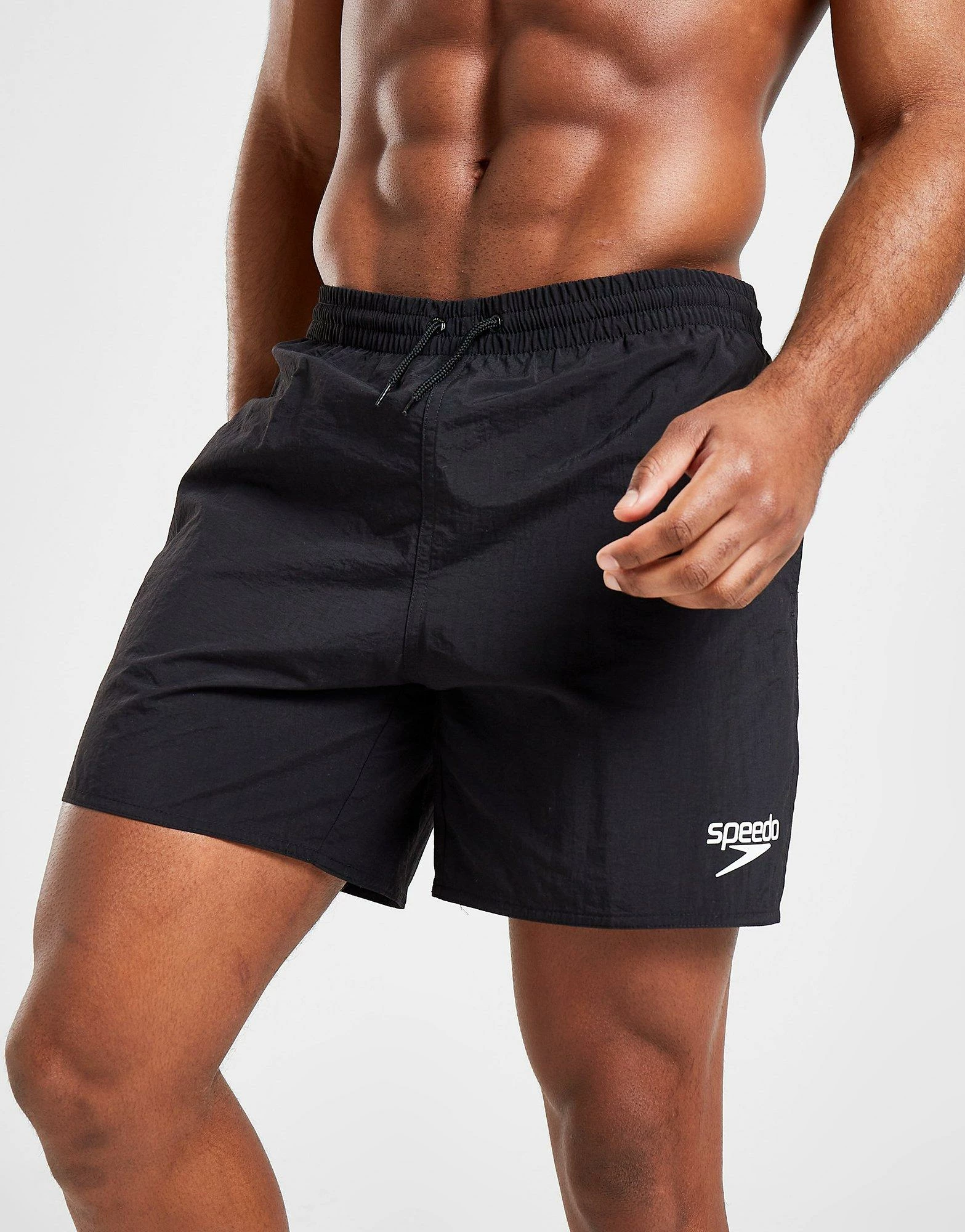 Get prepped for the pool with these men’s Essential 16″ Swim Shorts from Speedo. In a Black colourway, these standard-fit swim shorts are made from lightweight, recycled nylon fabric for a quick-drying finish. They feature an elasticated waistband with an adjustable draw cord for a custom fit, as well as side pockets. Finished with signature Speedo branding printed to the leg in white. Machine washable. | Our model is 6’0″ and wears a size medium.