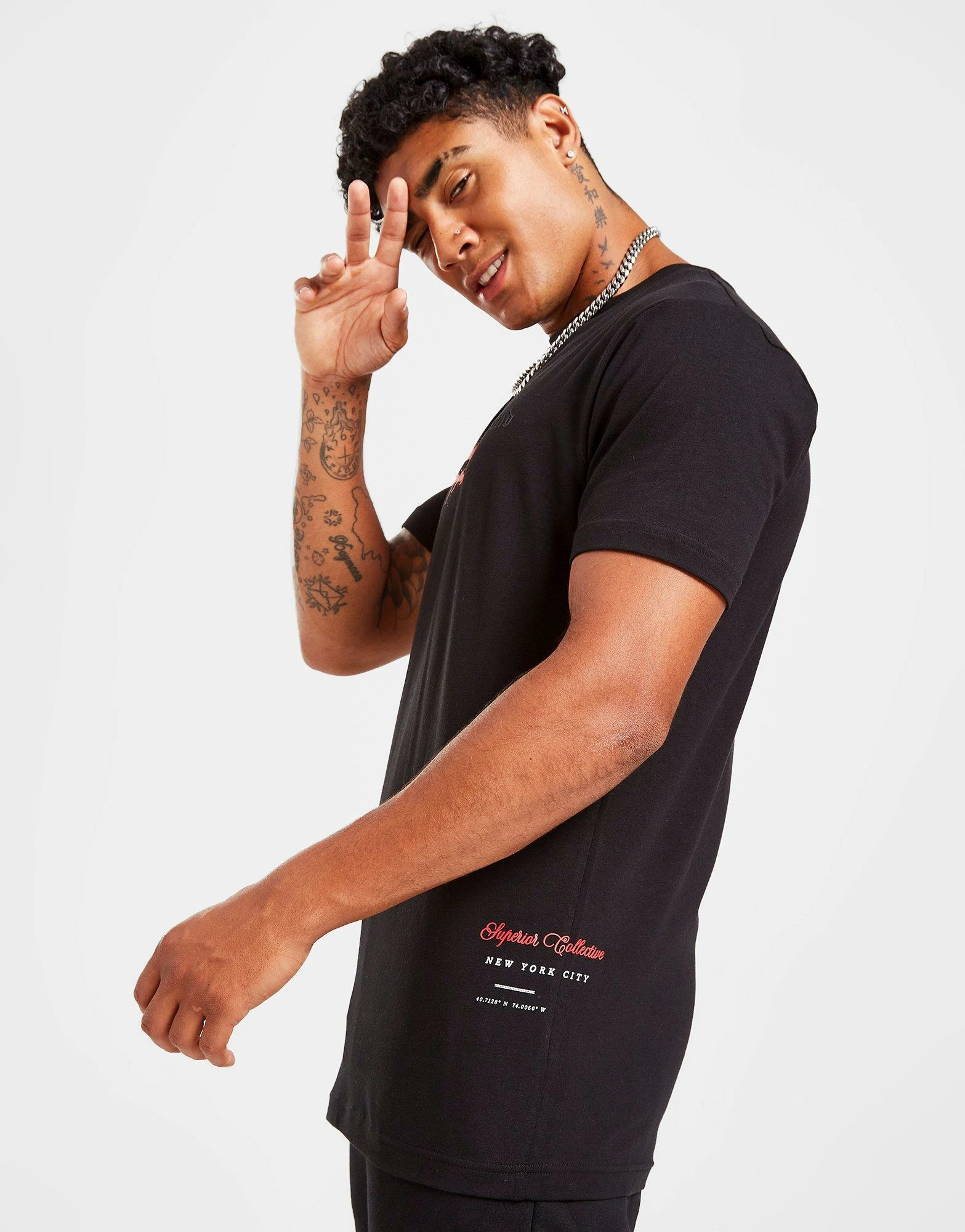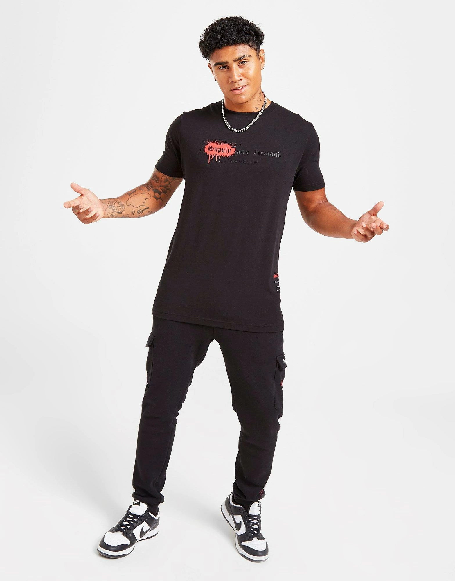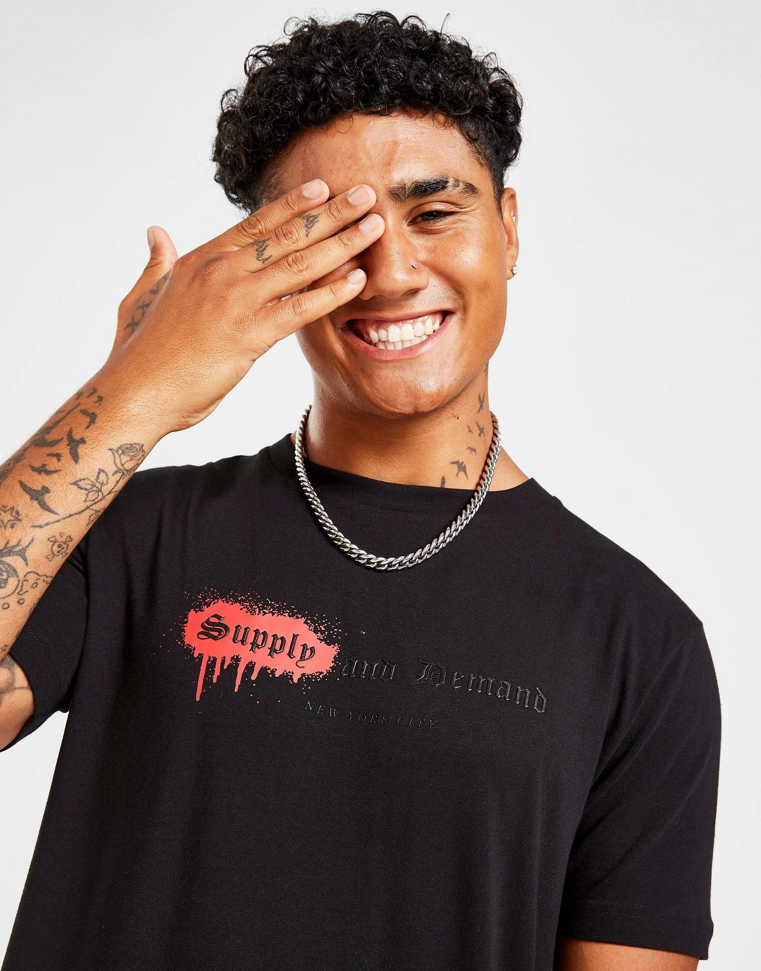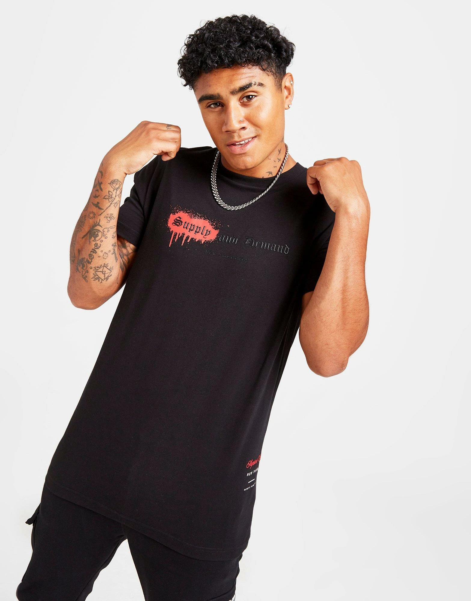 Cop essential streetwear with this men’s Marker T-Shirt from Supply & Demand. In a Black colourway, this standard-fit tee is made with a soft and light cotton fabric with added stretch for complete comfort. It features a crew neckline with short sleeves for a classic look and is finished up with Supply & Demand branding to the chest. Machine washable. | Our model is 5’11” with a 38″ chest and wears a size medium.