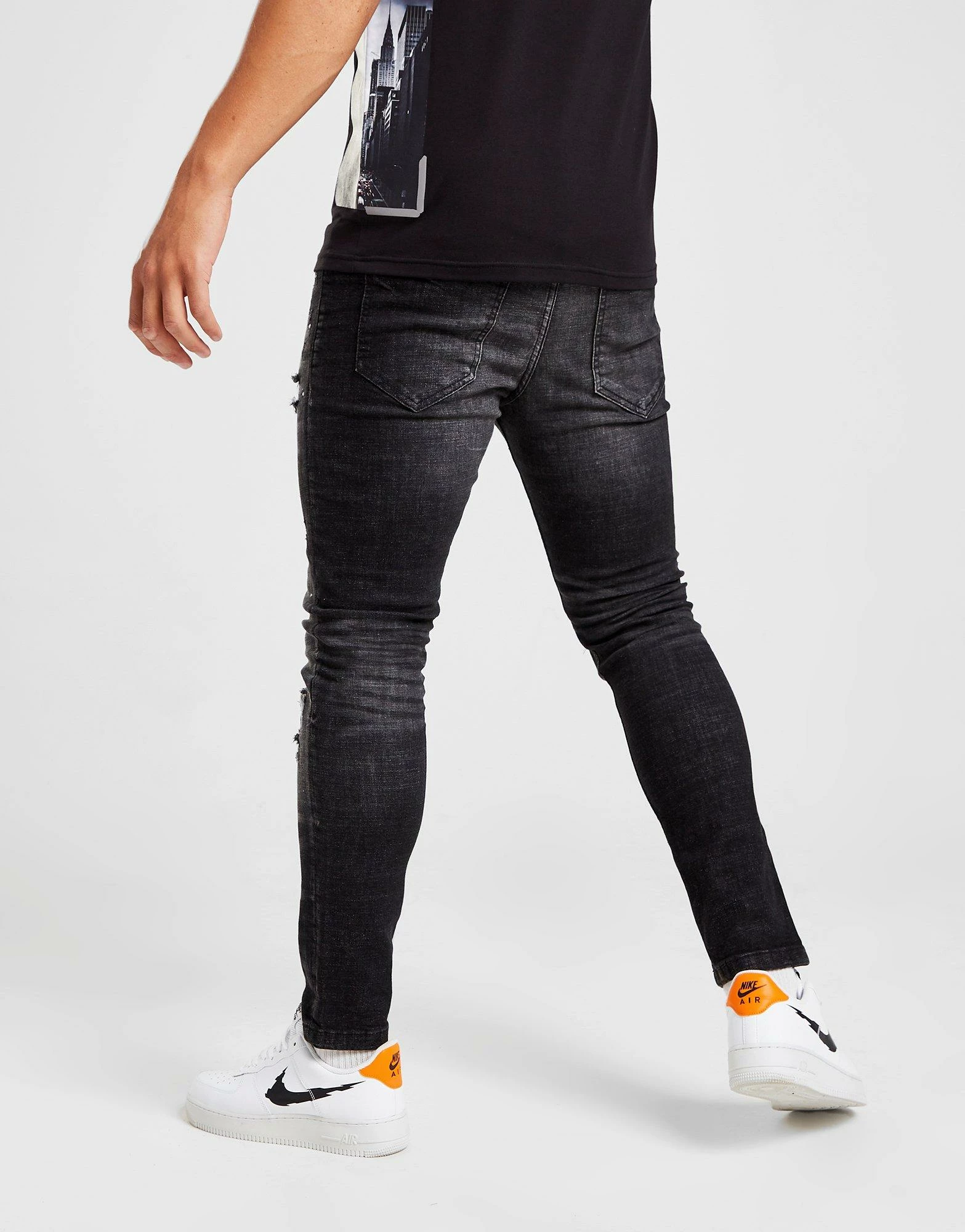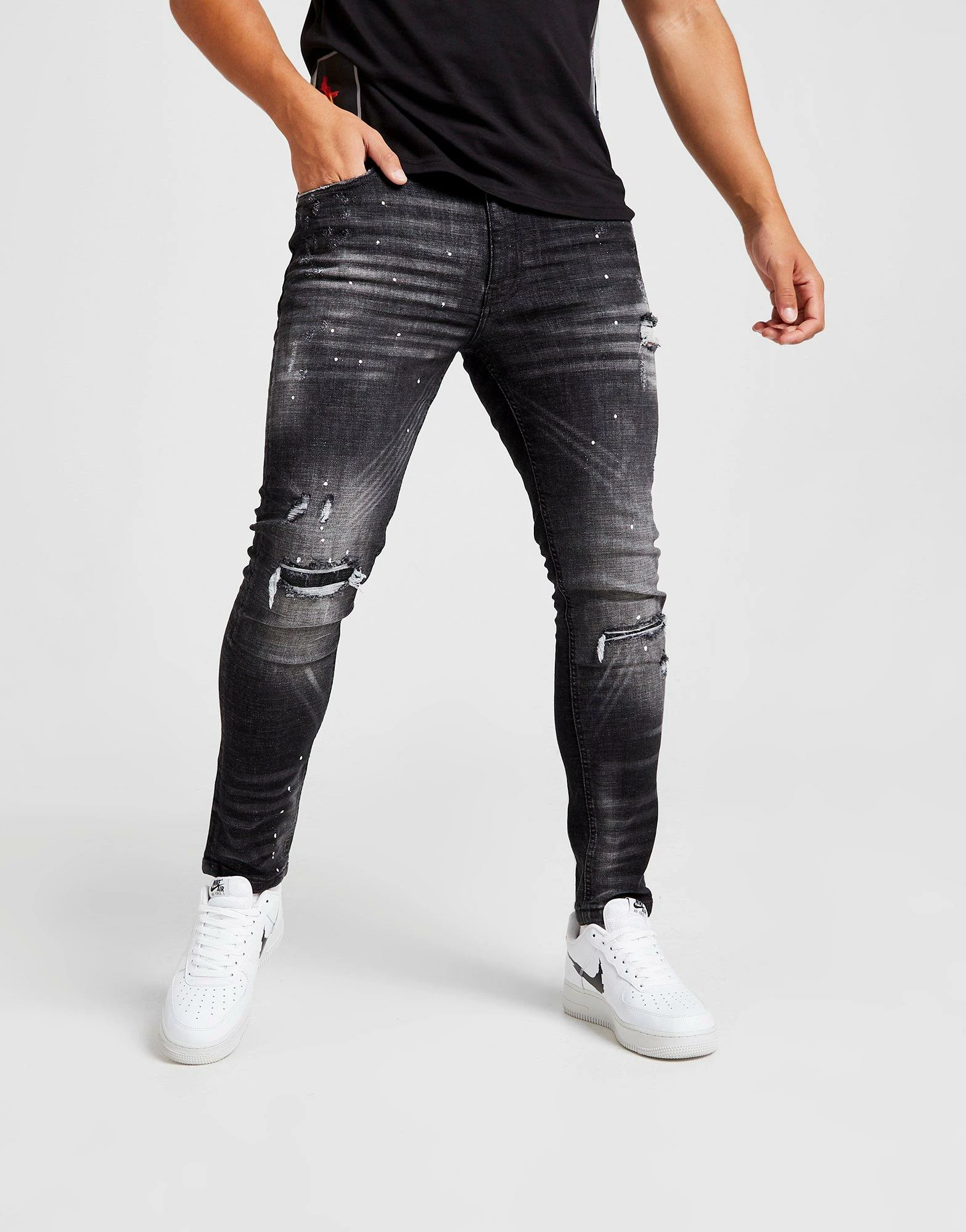 Upgrade your look with these men’s Onyx Denim Jeans from Supply & Demand. In a Black colourway, these slim fit jeans are made with a durable denim that has added stretch for max’ comfort every time you pull them on. They feature belt loops for an adjustable fit with pockets to store your essentials and are finished up with ripped details to amp up the look. Machine washable. | Our model is 6’1″ and wears a size medium.