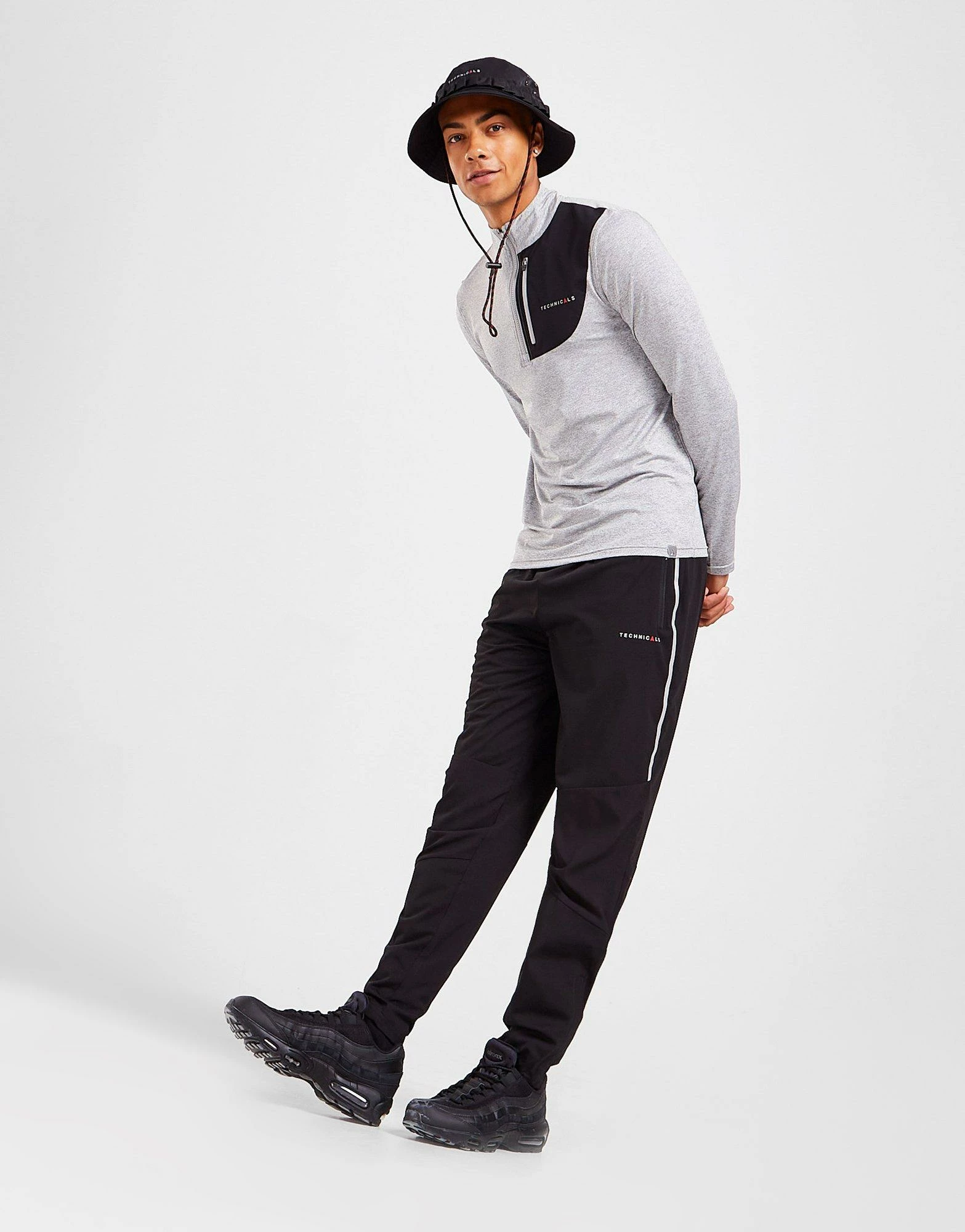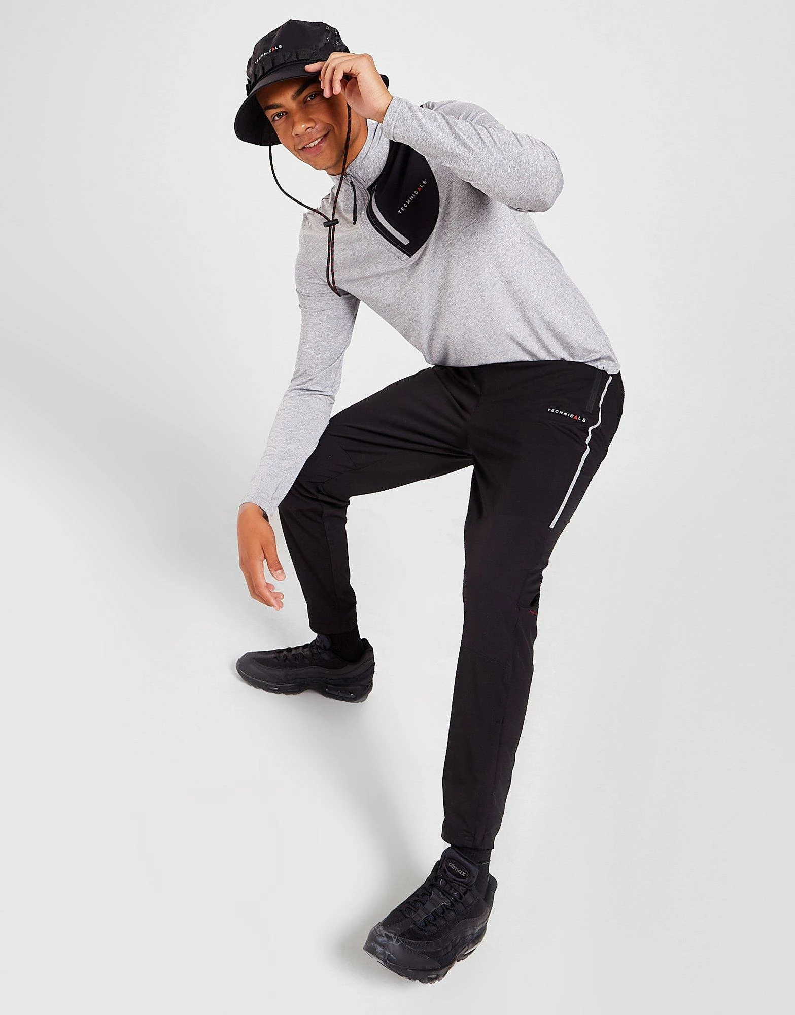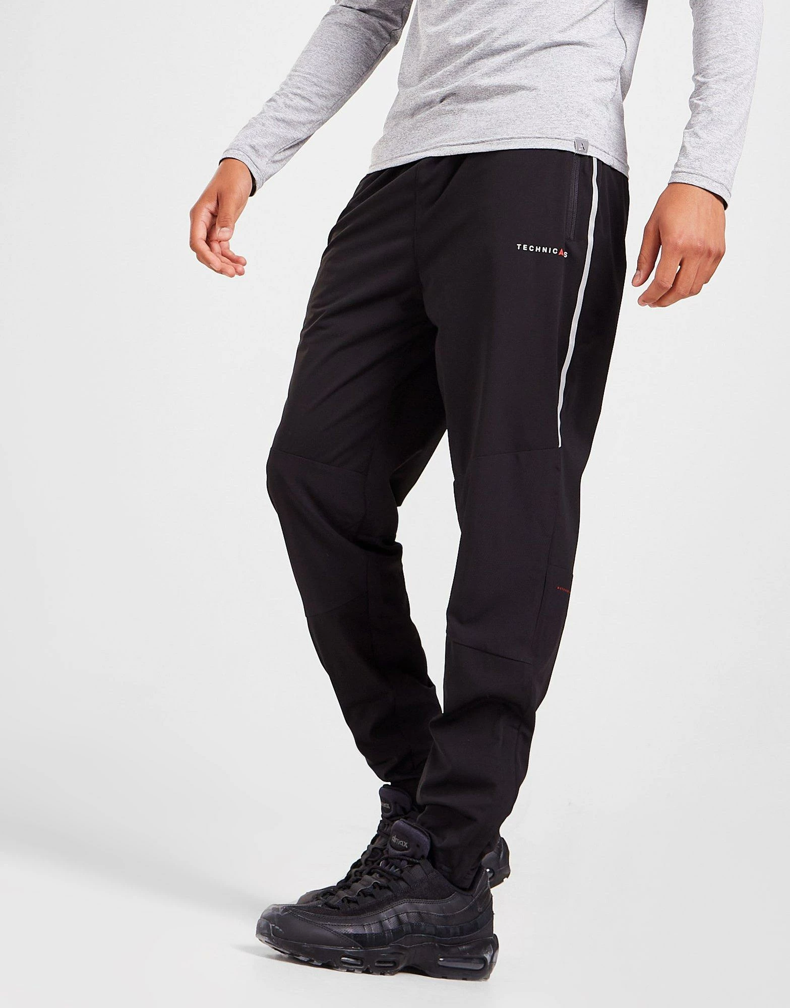 Step out in adventure-ready style with these men’s Float Track Pants from Technicals. In a Black colourway, these tapered pants are cut from smooth, lightweight poly fabric for maximum comfort. They feature an elasticated waistband for a relaxed fit, with zippered cuffs for easy on-and-off and zip-up side pockets for secure storage. Finished up with Technicals branding to the leg. Machine washable. | Our model wears a size medium.