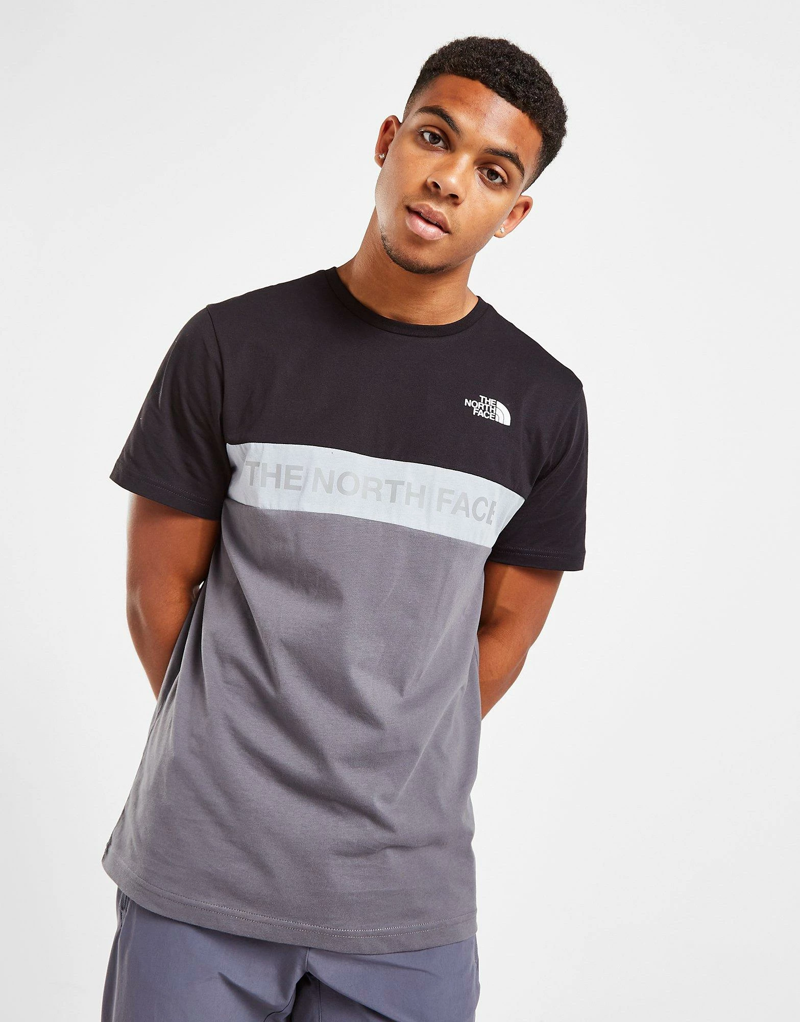 Step up your style with this men’s Colour Block Grid T-Shirt from The North Face. In a Black and Grey colour block design, this regular-fit tee is made with a cotton fabric that’s soft and breathable for max’ comfort. It features a crew neckline with short sleeves for a classic cut and is signed off with TNF branding to the chest. Machine washable. | Our model is 6’1″ with a 38″ chest and wears a size medium.