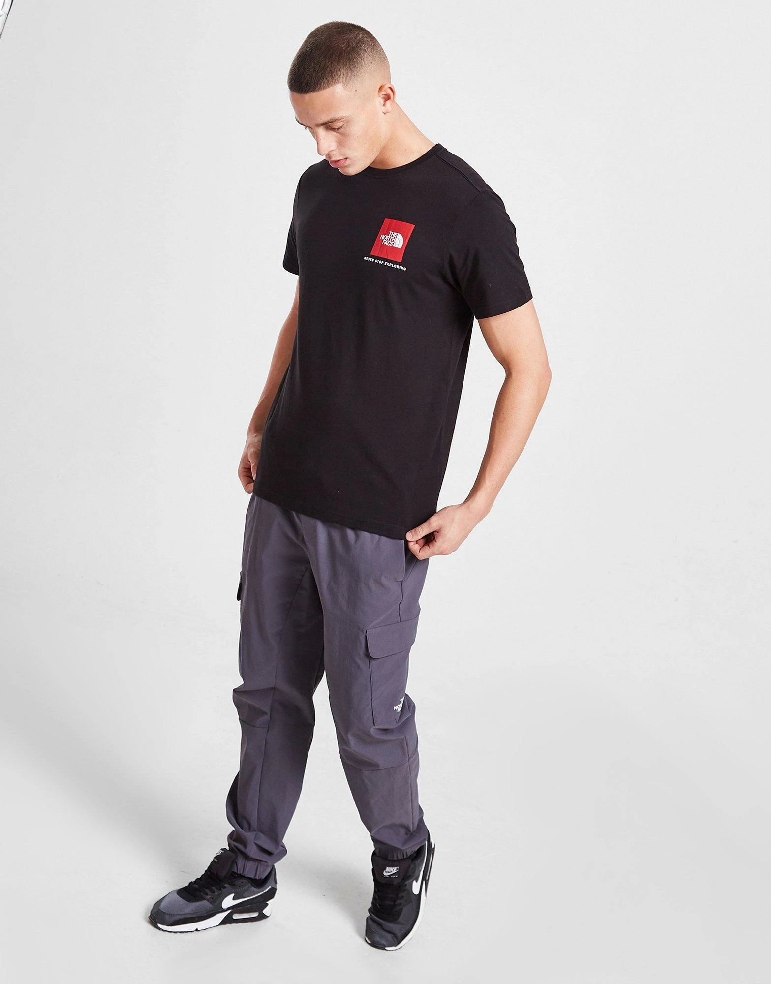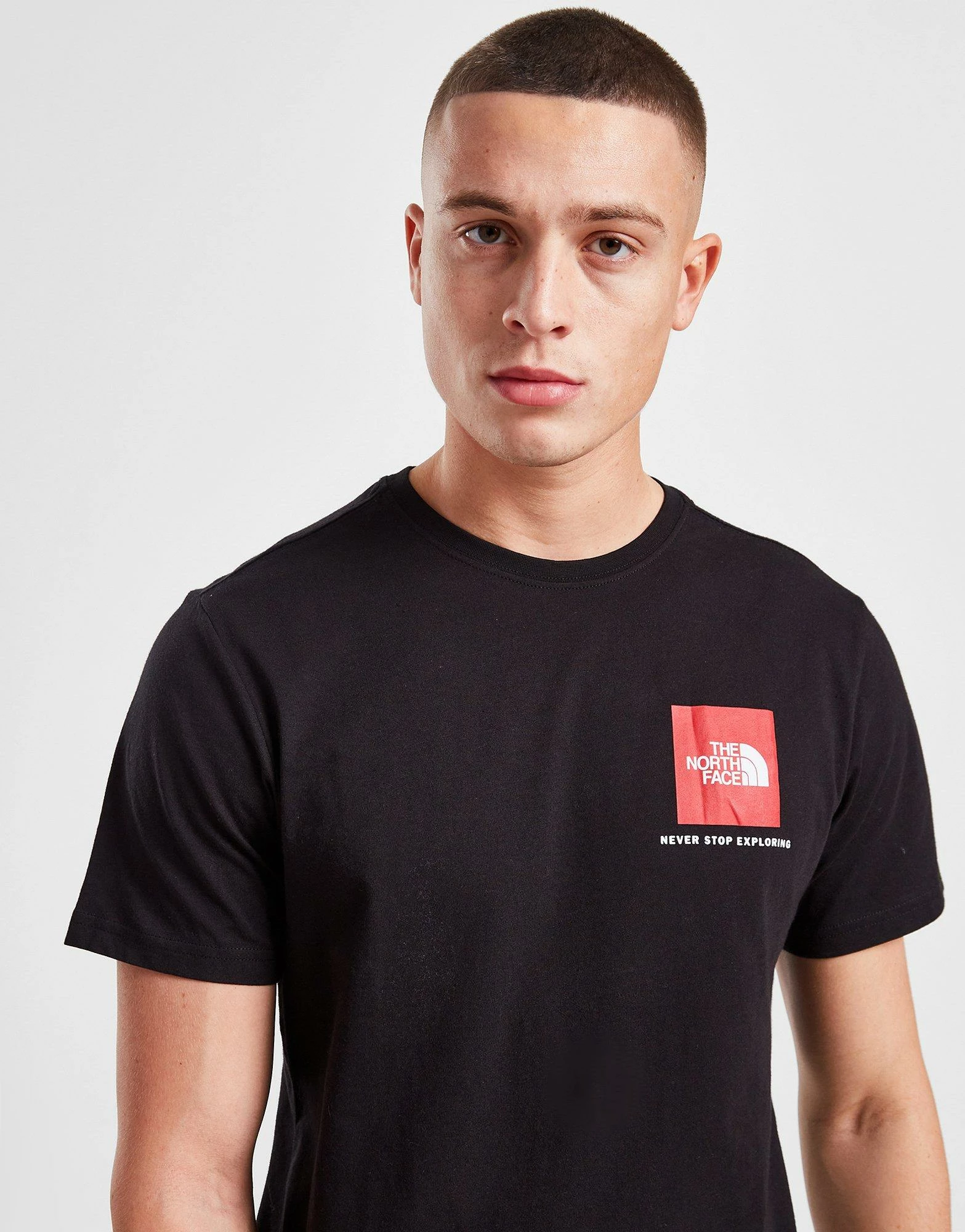 Eksklusivt. Opfrisk stilen med denne herre Fine Box T-Shirt fra The North Face. Kommer i sort og er produceret i et blødt bomuld. Afsluttet med grafisk print i rød på brystet. Tåler maskinvask. Vores model er 188 cm og bærer en str. M.