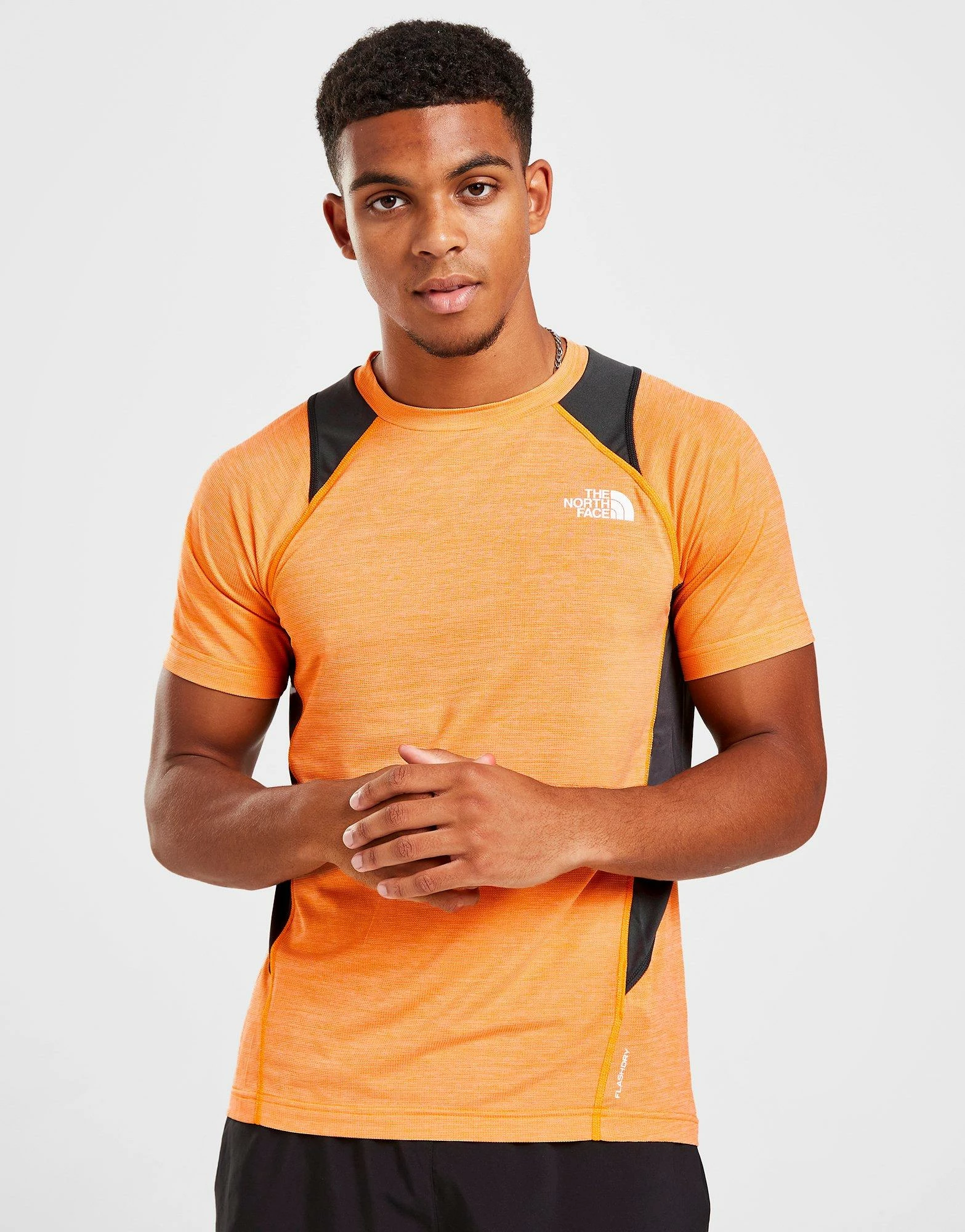 Feelin’ adventurous? Gear up in this men’s Glacier T-Shirt from The North Face. In an Orange colourway, this slim-fit tee is made with a light and stretchy poly fabric that’s equipped with FlashDry tech to wick away sweat for cool comfort. It features a crew neckline with short raglan sleeves for a classic cut and is signed off with TNF branding to the chest. Machine washable. | Our model is 6’1″ with a 38″ chest and wears a size medium.