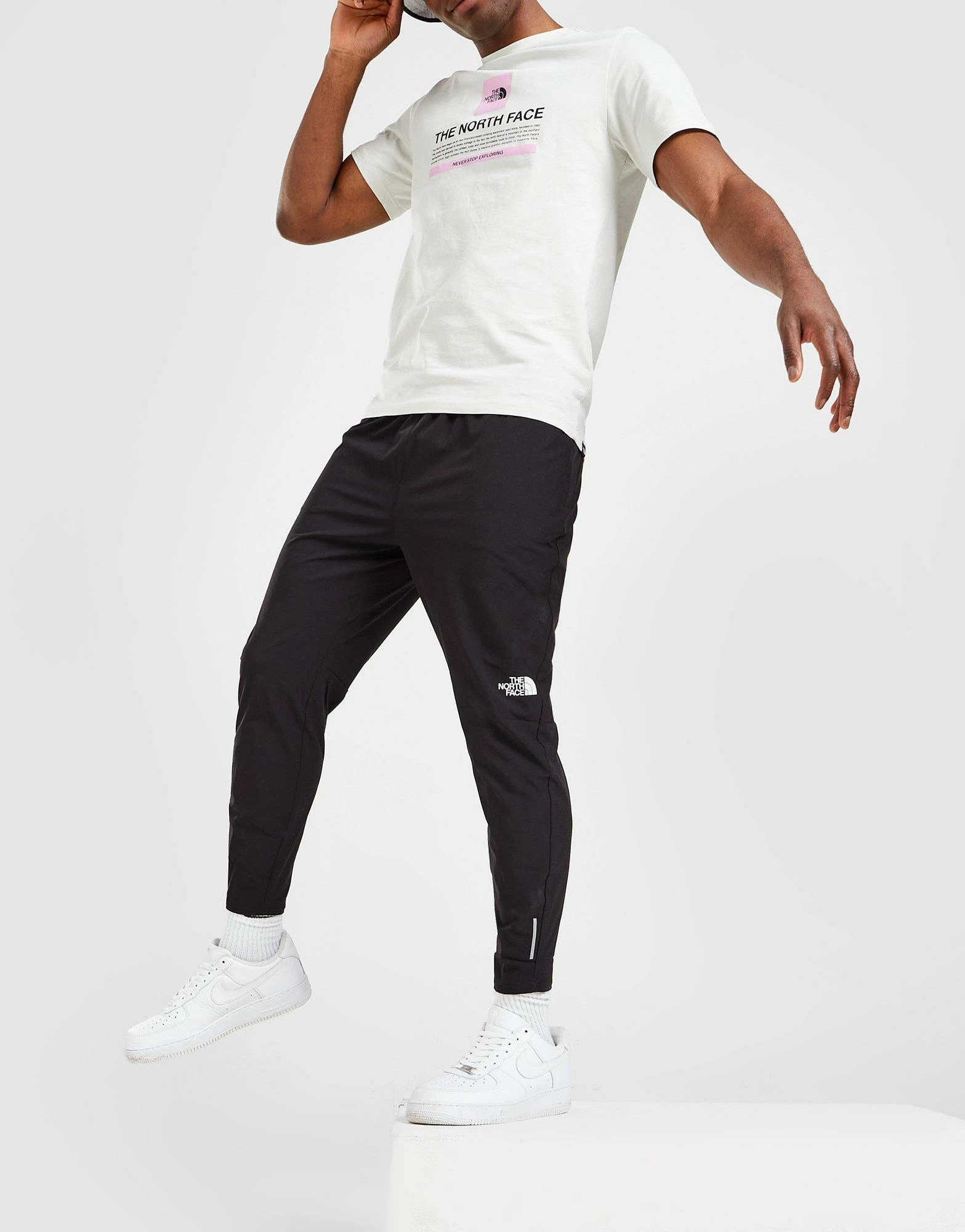Level up your off-duty looks with these men’s Movemynt Track Pants from The North Face. Coming in a black colourway, these regular-fit track pants are cut from smooth, lightweight recycled poly with extra stretch for essential comfort. They feature an elasticated waistband and slim, tapered legs for a secure fit, and pockets at the waist to stash your stuff. Finished up with reflective detailing and signature TNF branding at the thigh. Machine washable. | Our model is 6’2″ and wears a size medium.