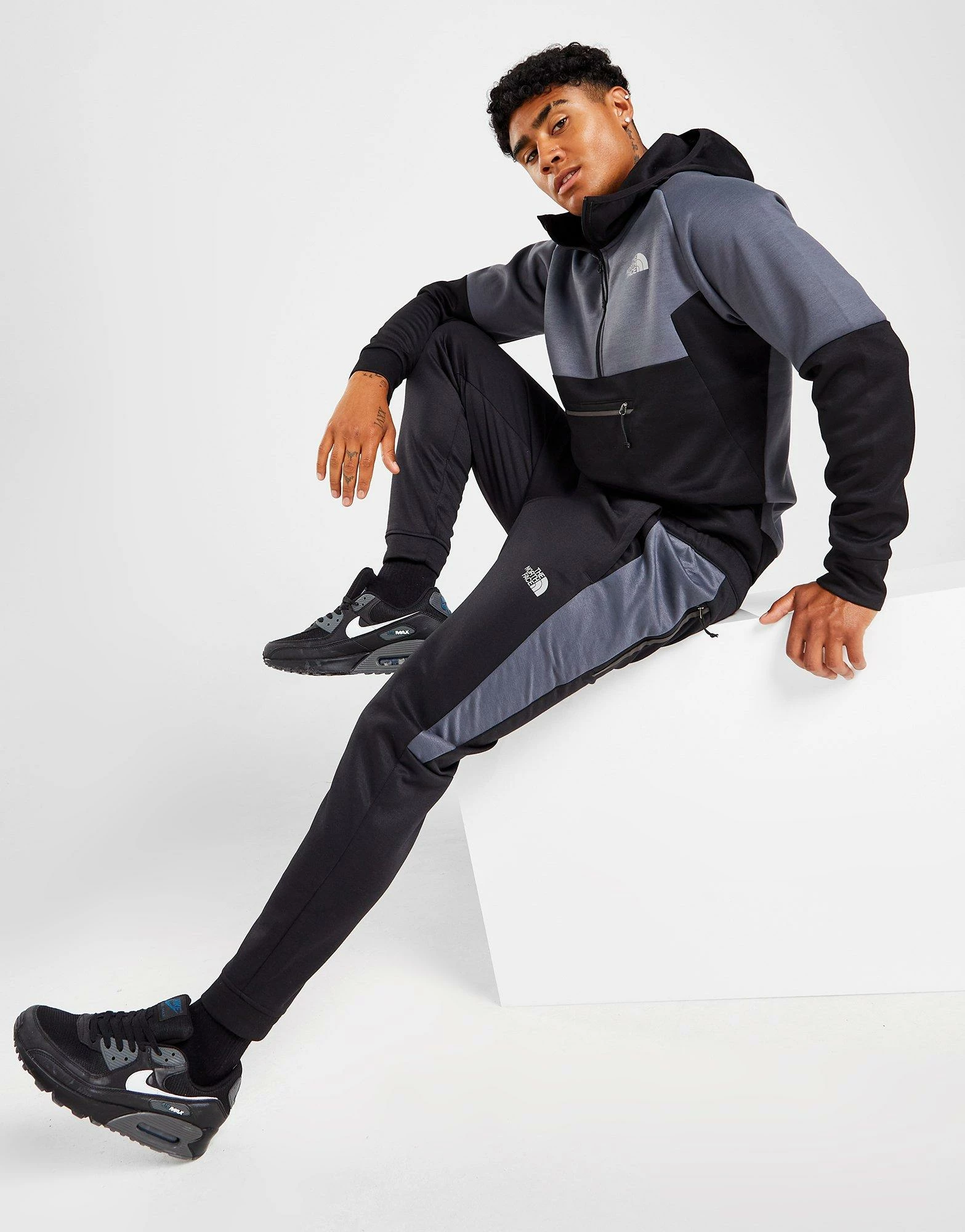 Gear up and get exploring in these men’s Tek Track Pants from The North Face. In a Black and Grey colourway, these streamlined sweats are made from smooth poly fabric, with added stretch through the elasticated waistband and drawcord fastening for custom comfort. They have cuffed ankles for a tapered feel, while open-hand and zippered side pockets provide space for your essentials. These pants are finished off with contrasting Simple Dome branding. Machine washable. | Our model is 5’11” and wears a size medium.