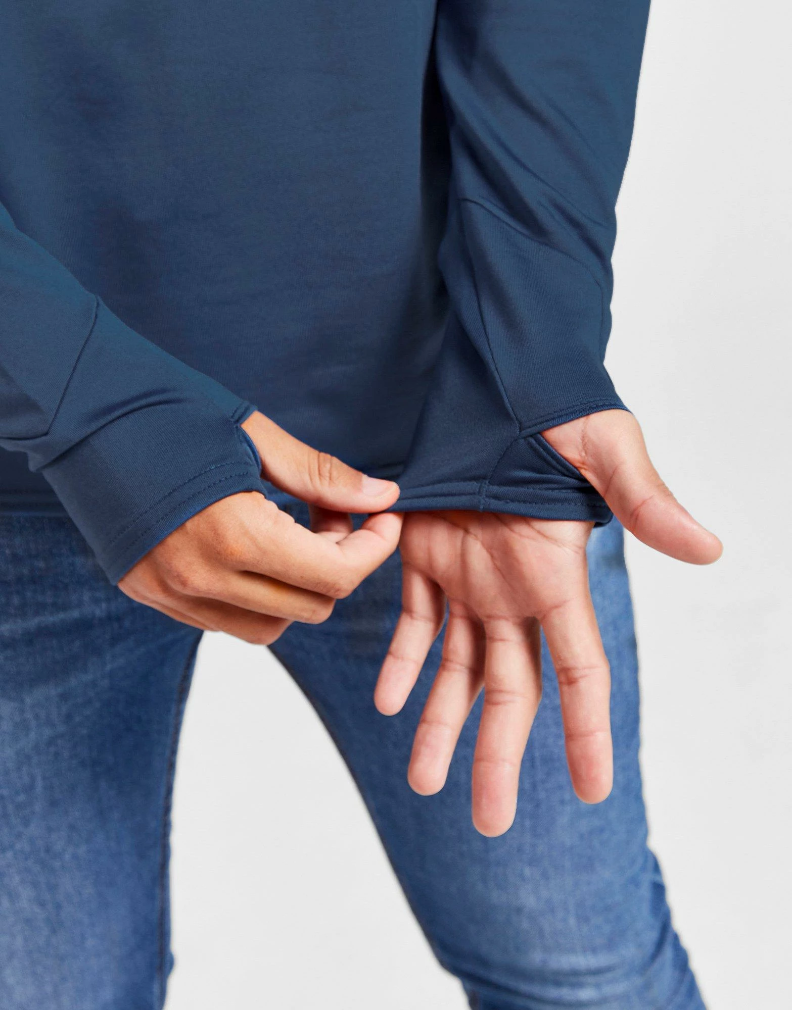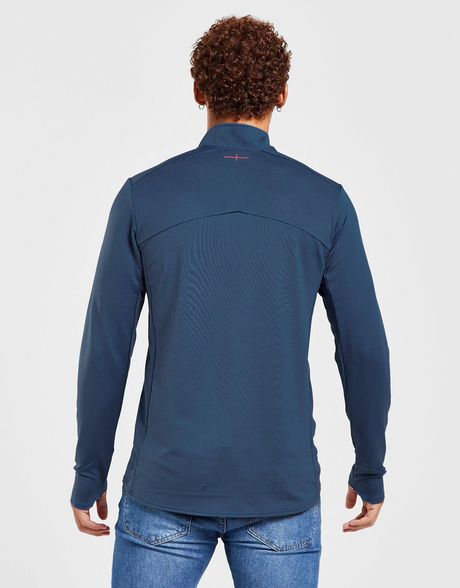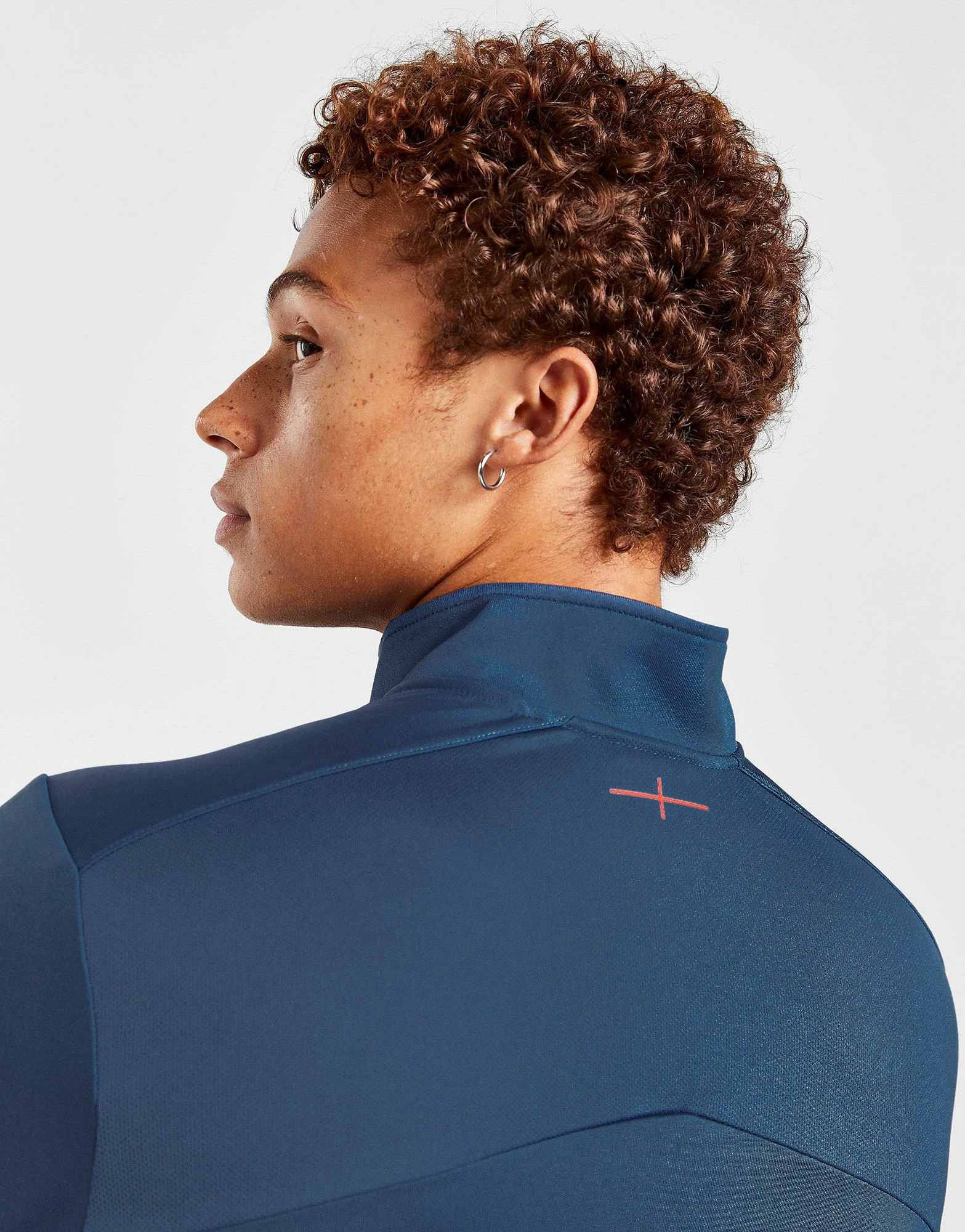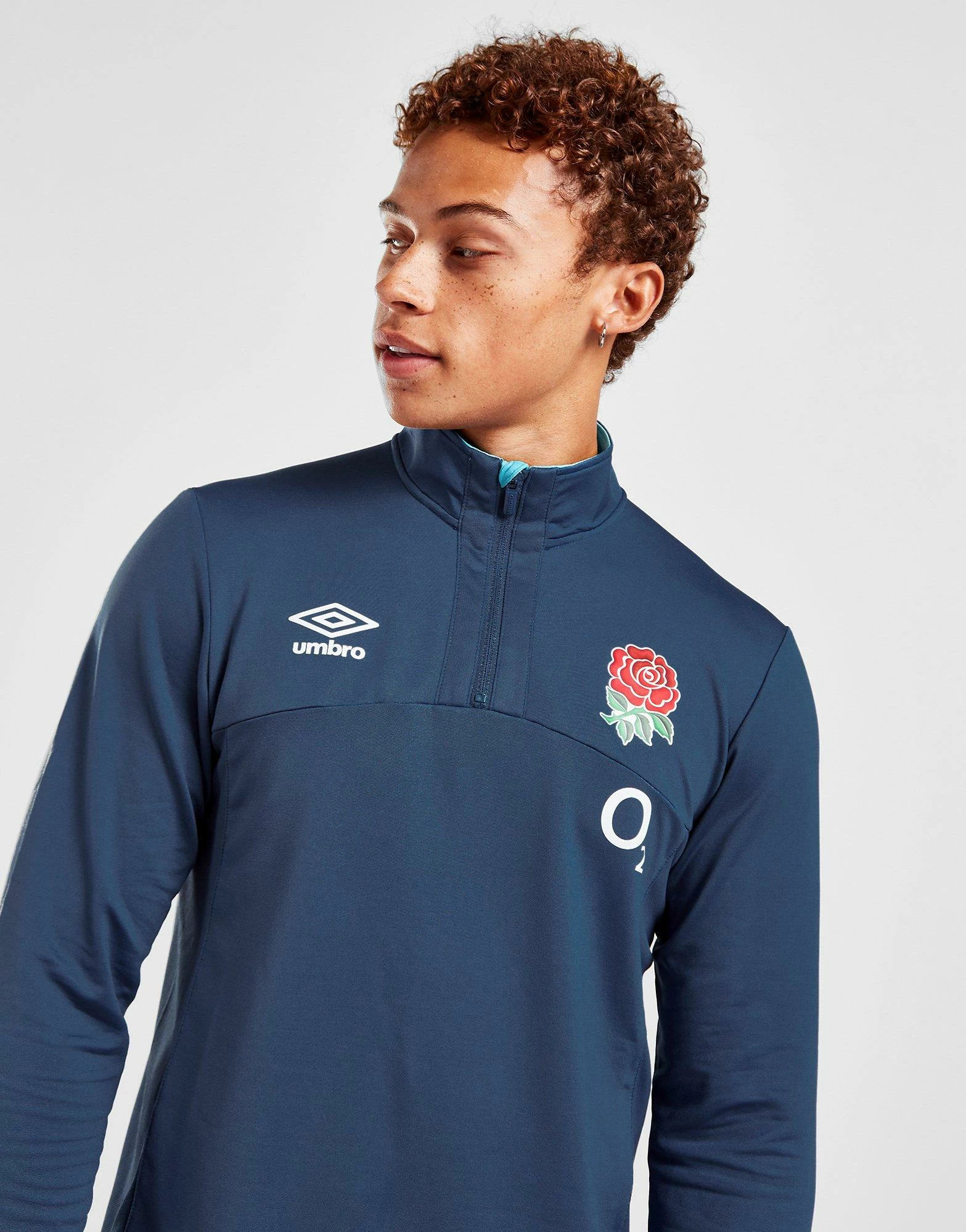 Show your support on and off the training field with this men’s England RFU Mid Layer Top from Umbro. In an Ensign Blue colourway, this regular-fit top is cut from a soft and stretchy French terry fabric that has a fleeced inner for added warmth. It features 1/4 zip fastening for custom airflow and long sleeves with thumbholes for coverage that stays in place. Finished with the England RFU badge and Umbro logo to the chest. Machine washable. | Our model is 6’1″ with a 38″ chest and wears a size medium.
