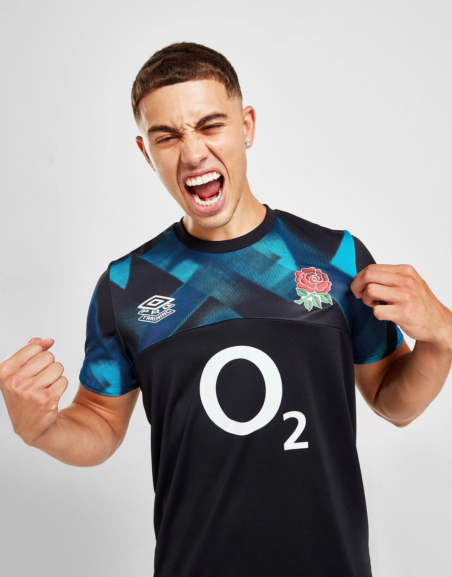 Gear up like the pros in this men’s England RFU Warm Up Shirt from Umbro. Coming in a Black colourway with a Blue graphic pattern to the top, this shirt is cut from smooth, durable poly fabric for lasting wear. With sweat-wicking tech to keep you cool, it features a classic crew neckline and short sleeves for a game-ready look. Finished up with Umbro branding to the chest alongside a signature Red Rose crest to highlight your pride. Machine washable.