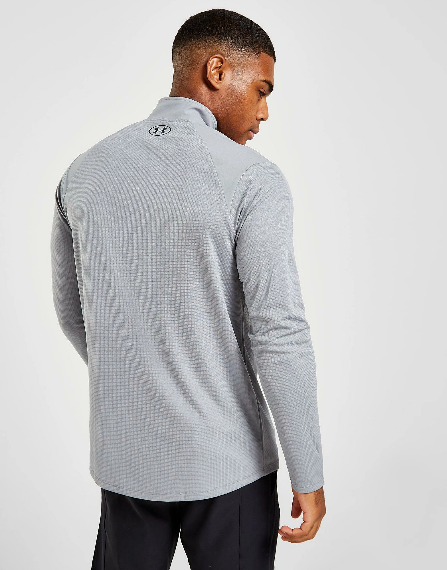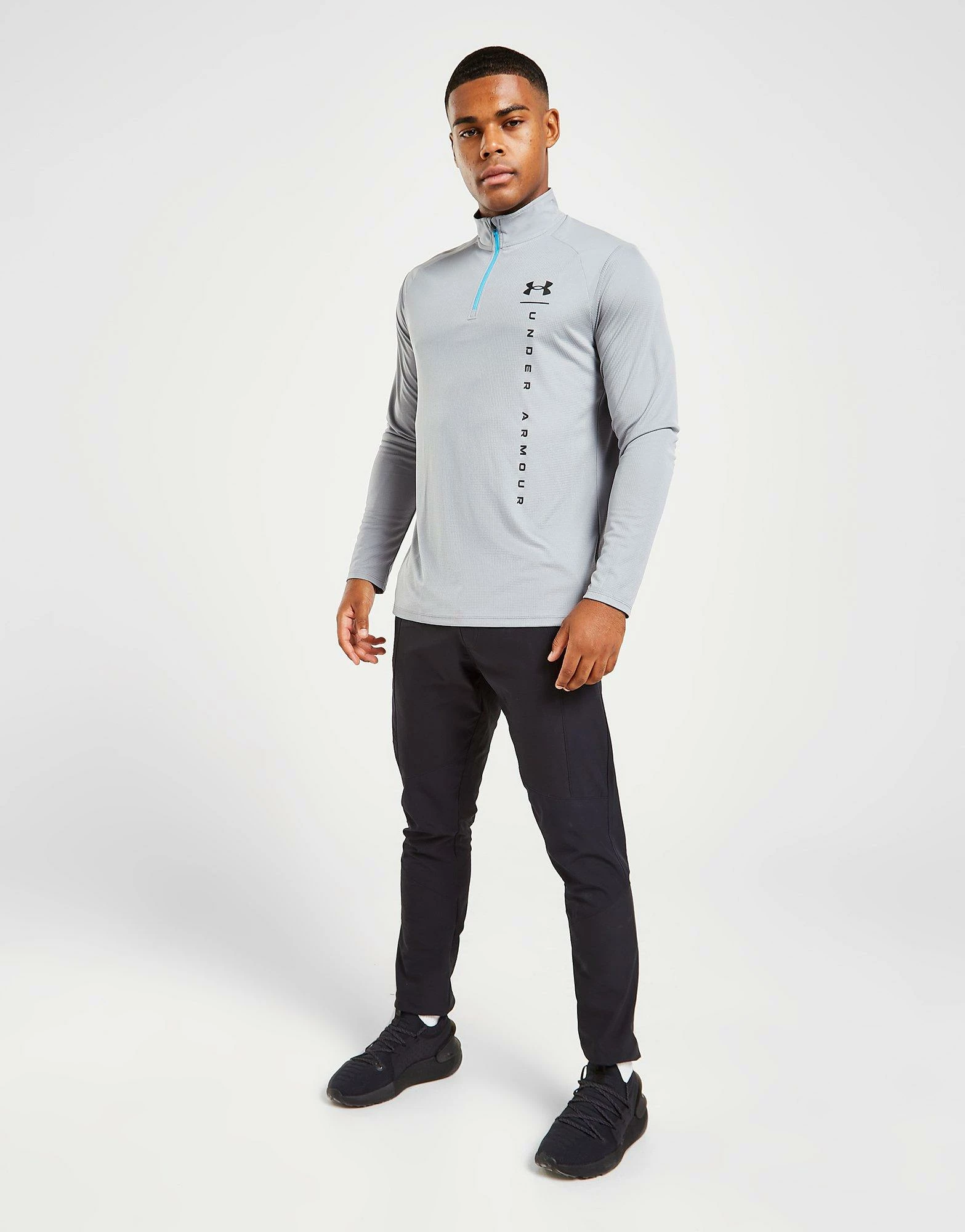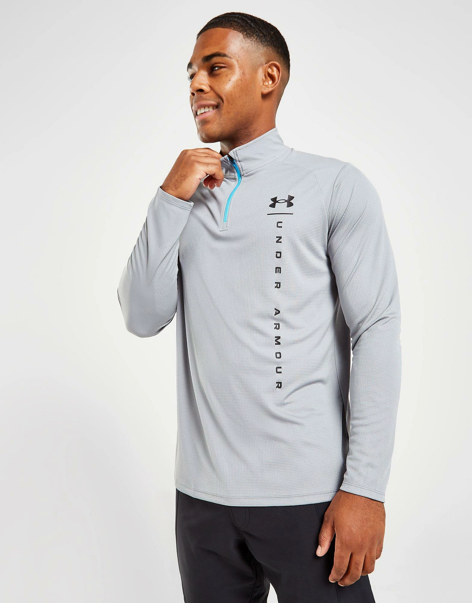 Smash your workout session in this men’s Quadra 1/4 Zip Top from Under Armour. Exclusive, this top is made with smooth, lightweight poly fabric that’s breathable and sweat-wicking for supreme comfort. In a Steel colourway, it features a quarter zip closure with a raised collar to adjust your aiflow, and long, raglan sleeves for maximum movement. Finished up with signature Under Armour branding at the chest and a downsized logo to the nape. Machine washable. | Our model is 6’0″ with a 38.5″ chest and wears a size medium.