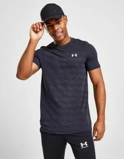 Get prepped to train in this men’s Vanish Radial T-Shirt from Under Armour. In a Black colourway, with a tonal, all-over design, this standard-fit tee is smooth and stretchy poly fabric for lightweight comfort. It features a classic crew neckline, short sleeves and breathable mesh inserts for cool comfort. With a no-sew finish for maximum comfort, this T-shirt is finished up with signature UA branding at the chest and reverse. Machine washable. | Our model is 6’0″ with a 38.5″ chest and wears a size medium.
