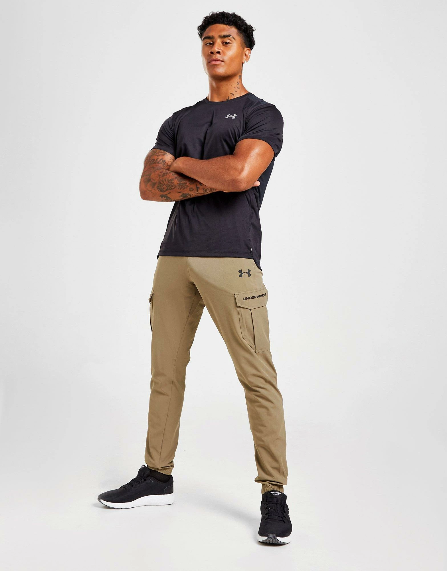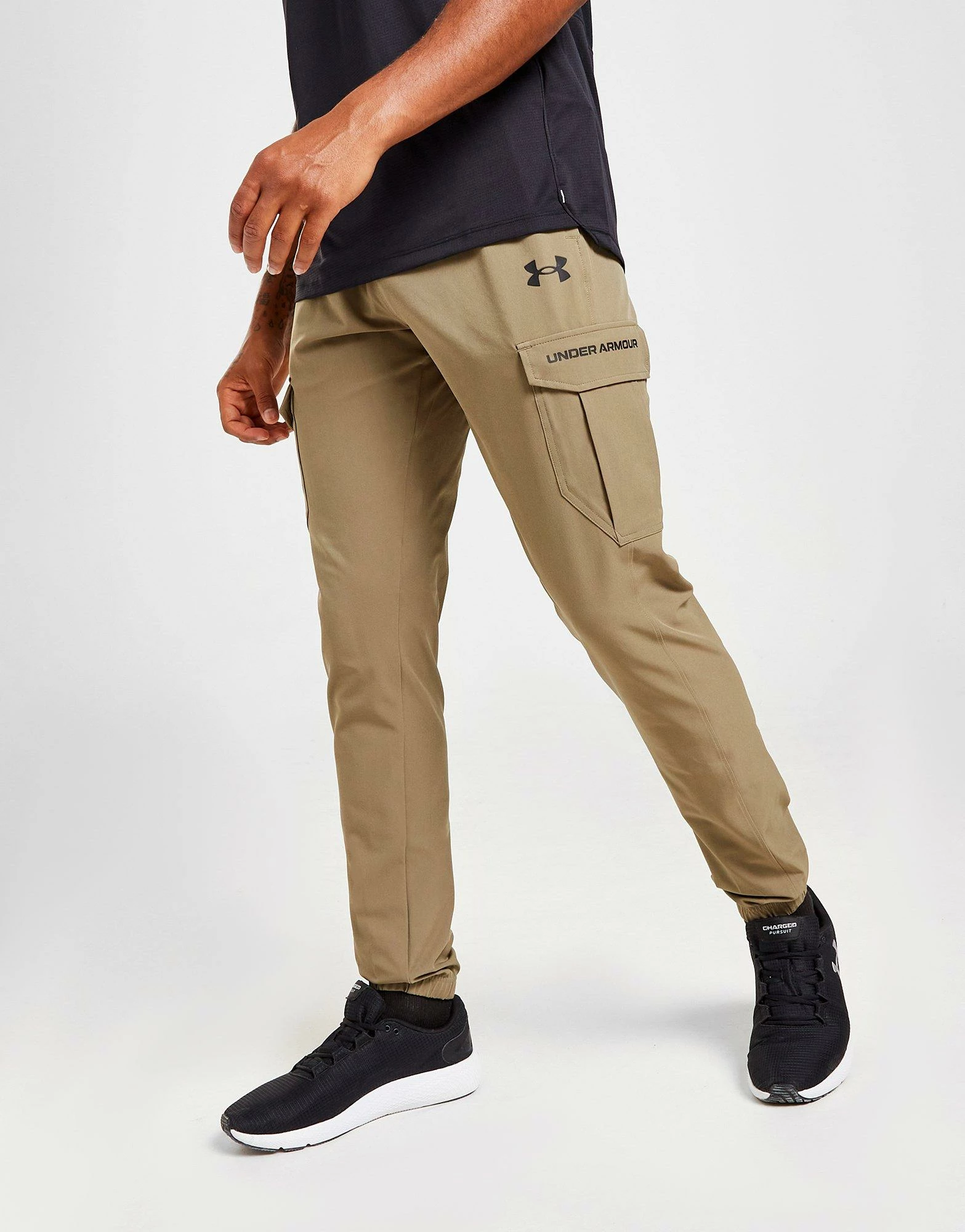 Ready-up for an outdoor adventure with these men’s Woven Wordmark Cargo Track Pants from Under Armour. In a Tent Brown colourway, these exclusive pants are cut from smooth poly fabric for lightweight comfort. They feature an elasticated waistband with an adjustable drawcord for a relaxed feel, while cuffed ankles lock in the fit. These pants have side and cargo pockets for your essentials and are finished up with Under Armour branding to the leg. Machine washable | Our model is 5’11” and wears a size medium.