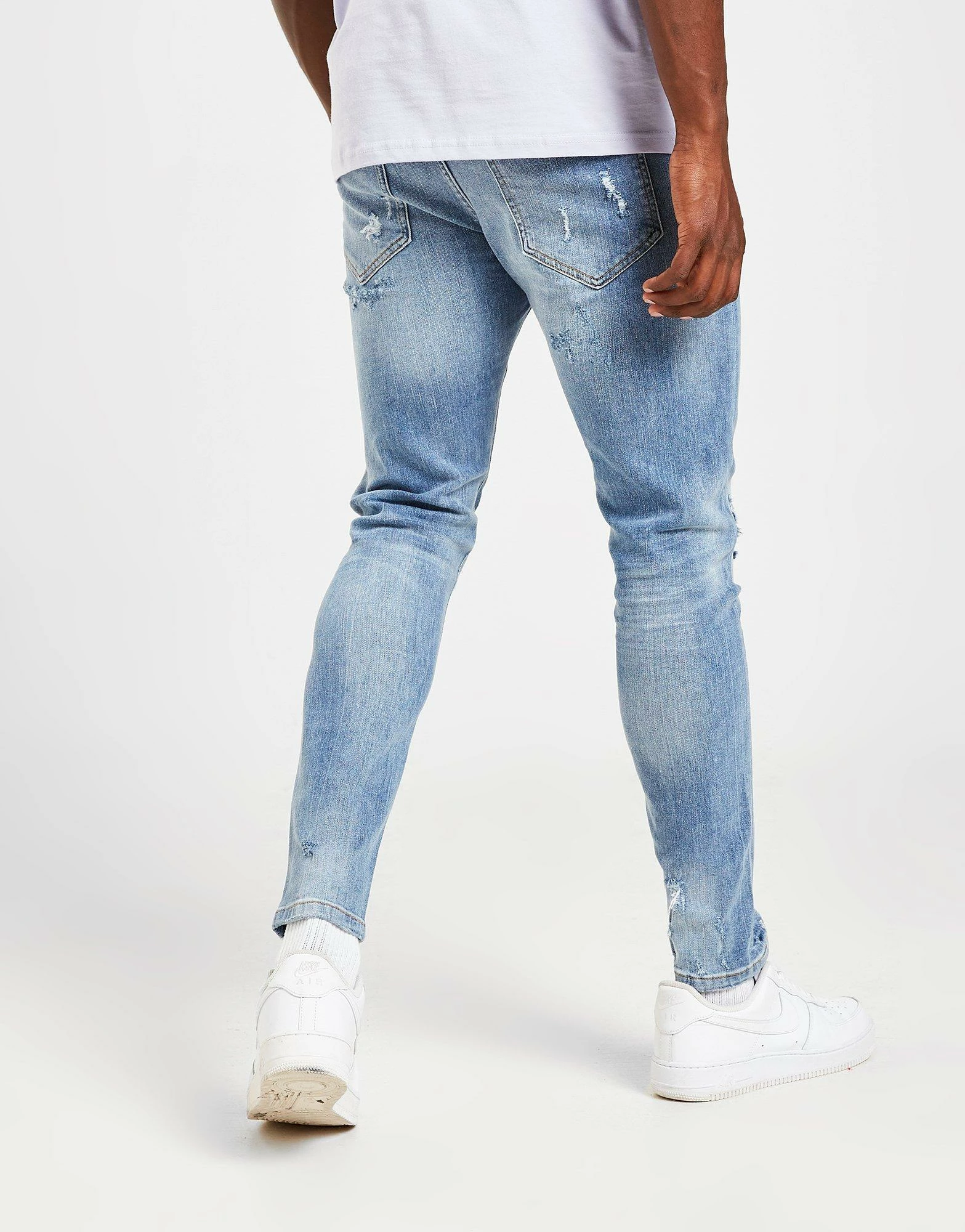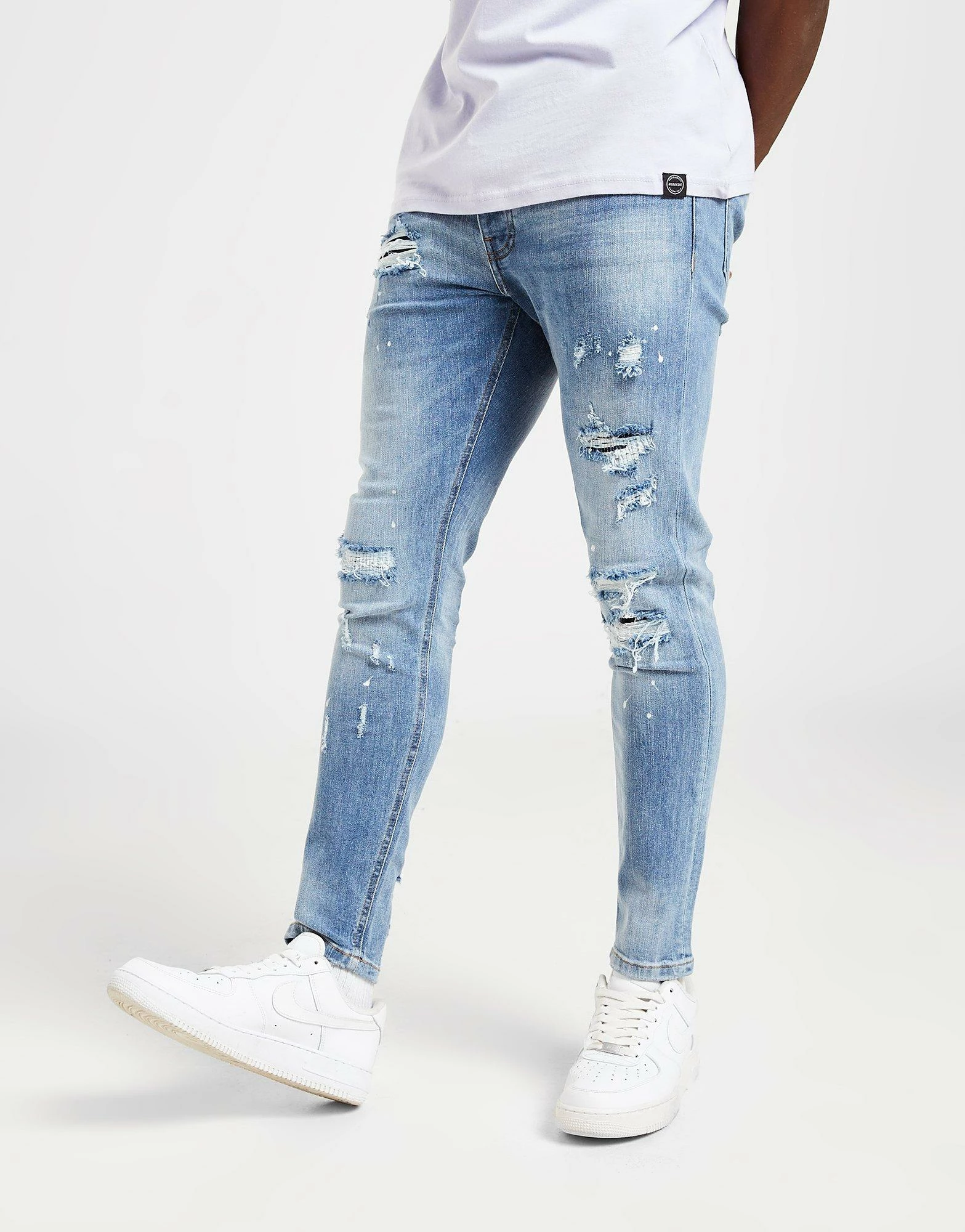Add some Italian style to your weekend looks with these men’s Marmo Rip Jeans from Valere. In a Mid Blue wash, these slim-fit jeans are made from durable denim fabric. They feature a branded button closure, as well as metal rivets and a classic five pocket construction. Finished with belt loops, distressed rip detailing and a Valere branded patch to the reverse. Machine washable. | Our model is 6’2″ and wears a size medium.